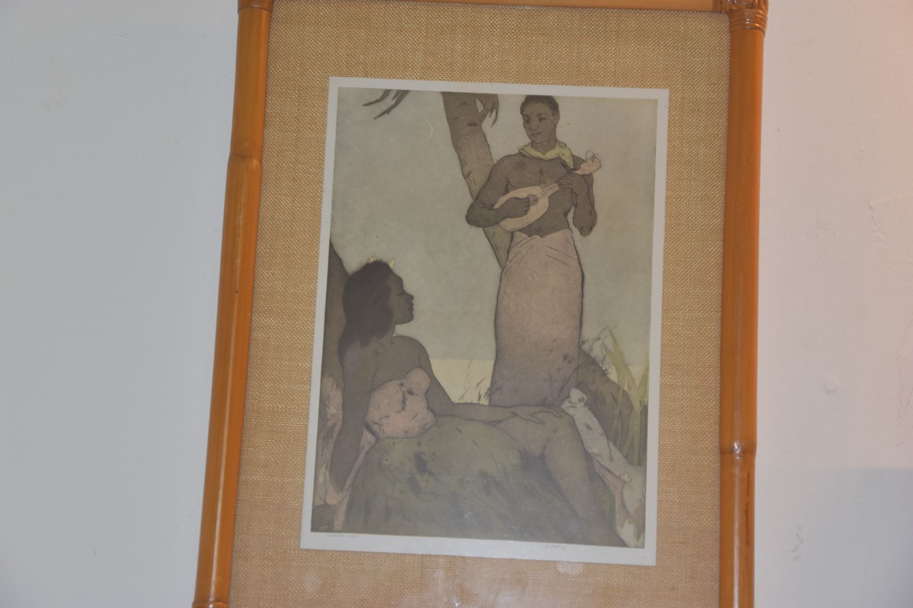 FRAMED OFFSET PRINT,  HAWAIIAN NIGHTS ; SIGNED JOHN KELLY (13 1/2  X 20 1/2 )
