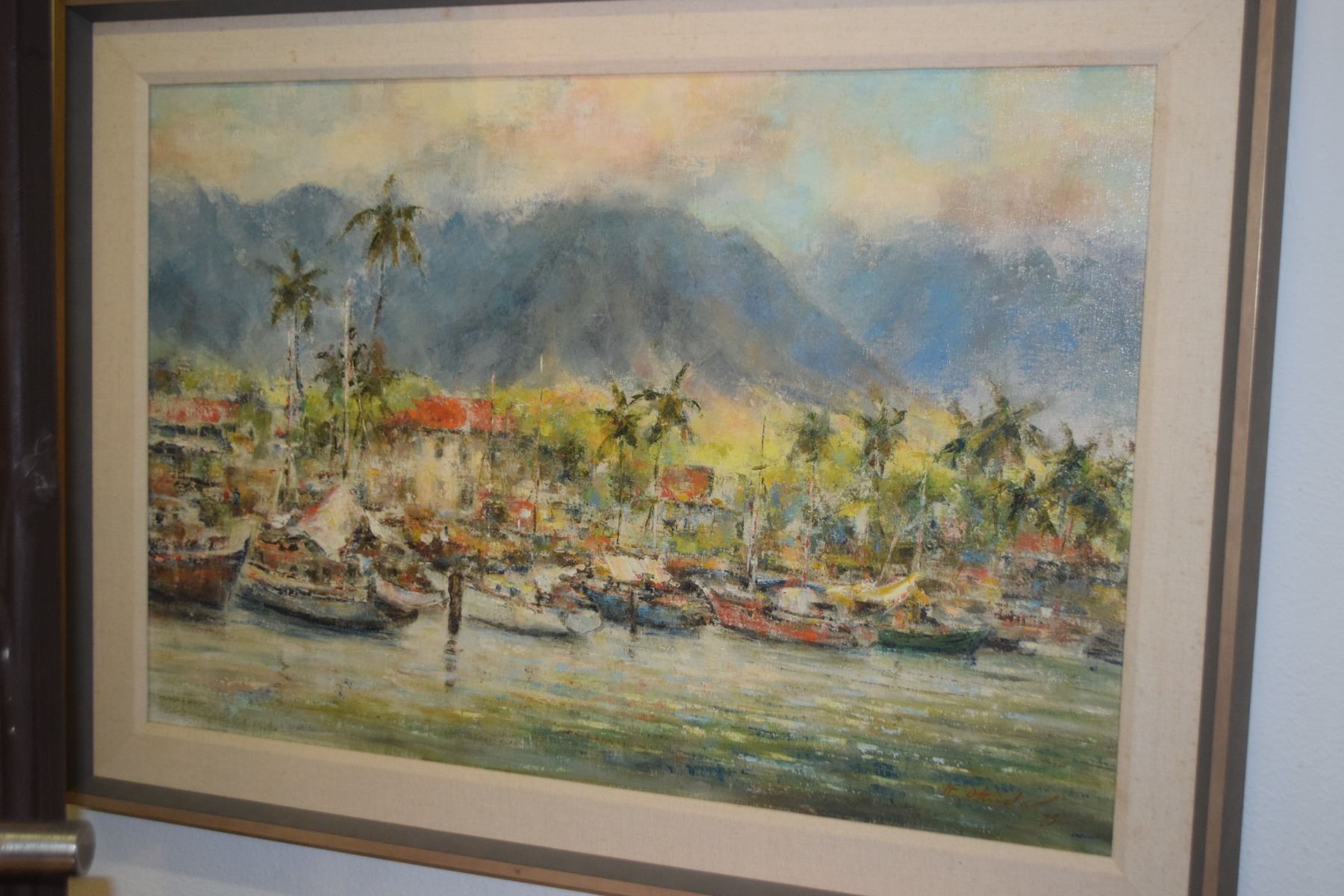 FRAMED OIL,  LAHAINA ; SIGNED H. OKUDA (HAJIME OKUDA) (30  X 42 )