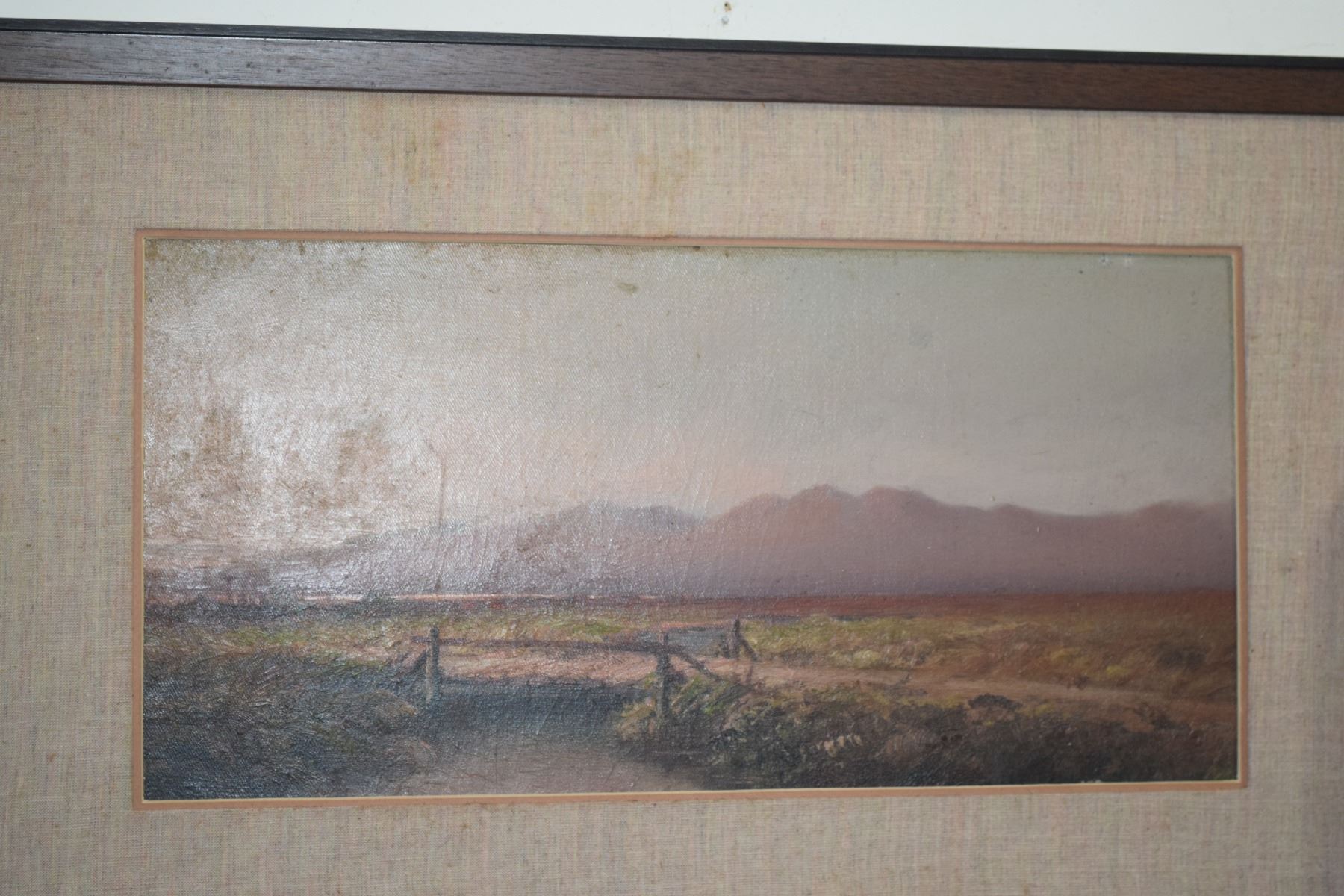 FRAMED OIL, "MOUNTAINS & BRIDGE" (17" X 26 1/")