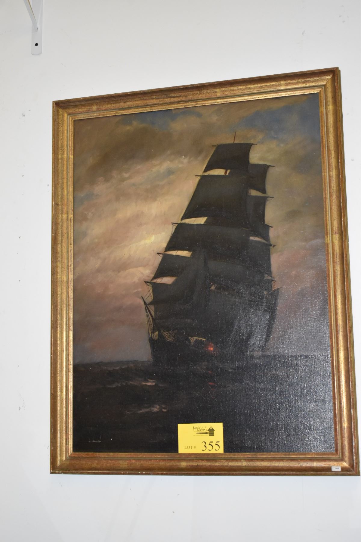 FRAMED OIL ON BOARD, SAILING SHIP; SIGNED T. BAILEY