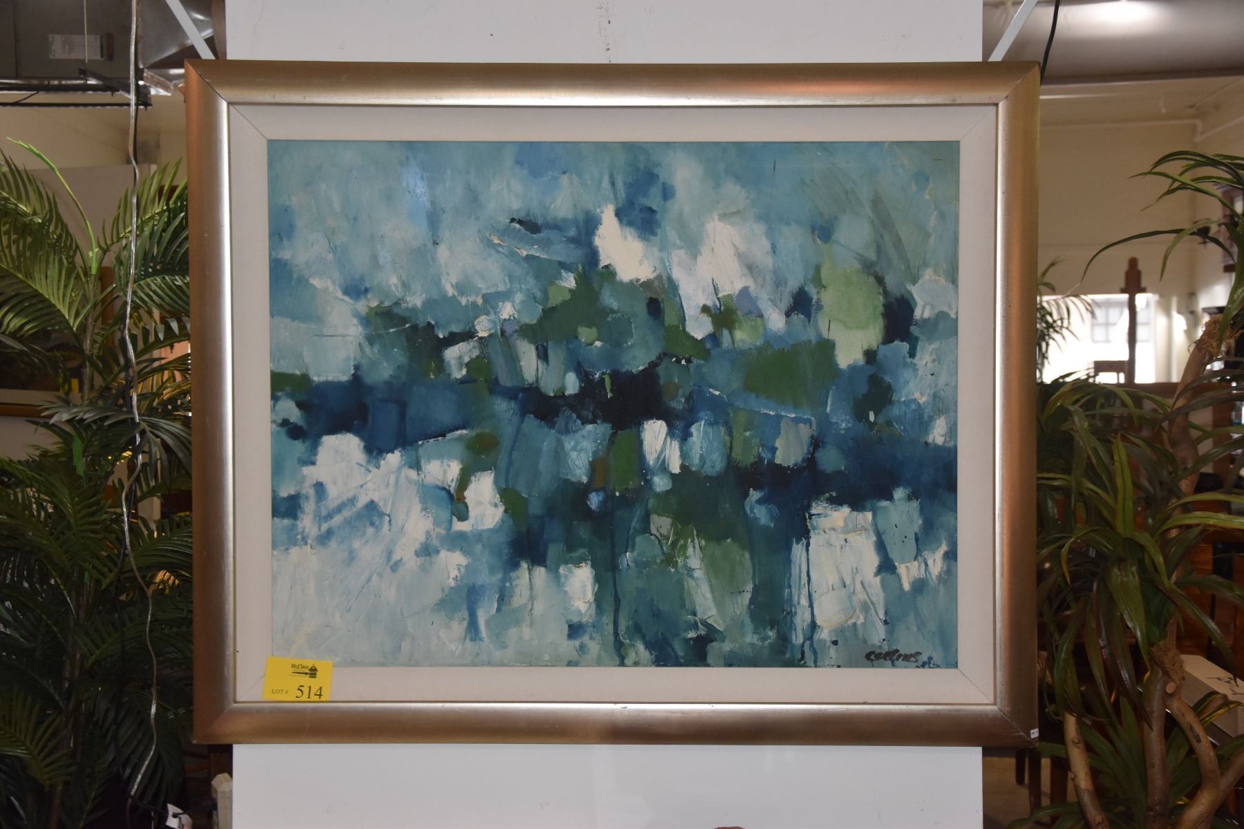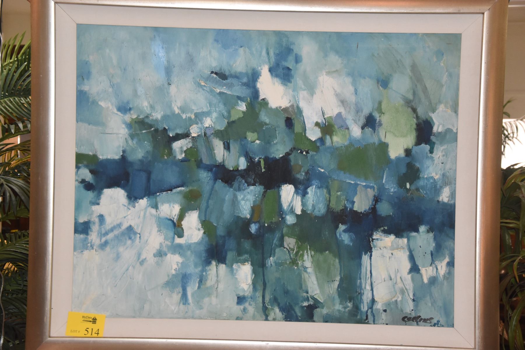FRAMED OIL ON CANVAS ABSTRACT, "VISUAL MELODY"; SIGNED COLLINS (50 1/2" X 43")