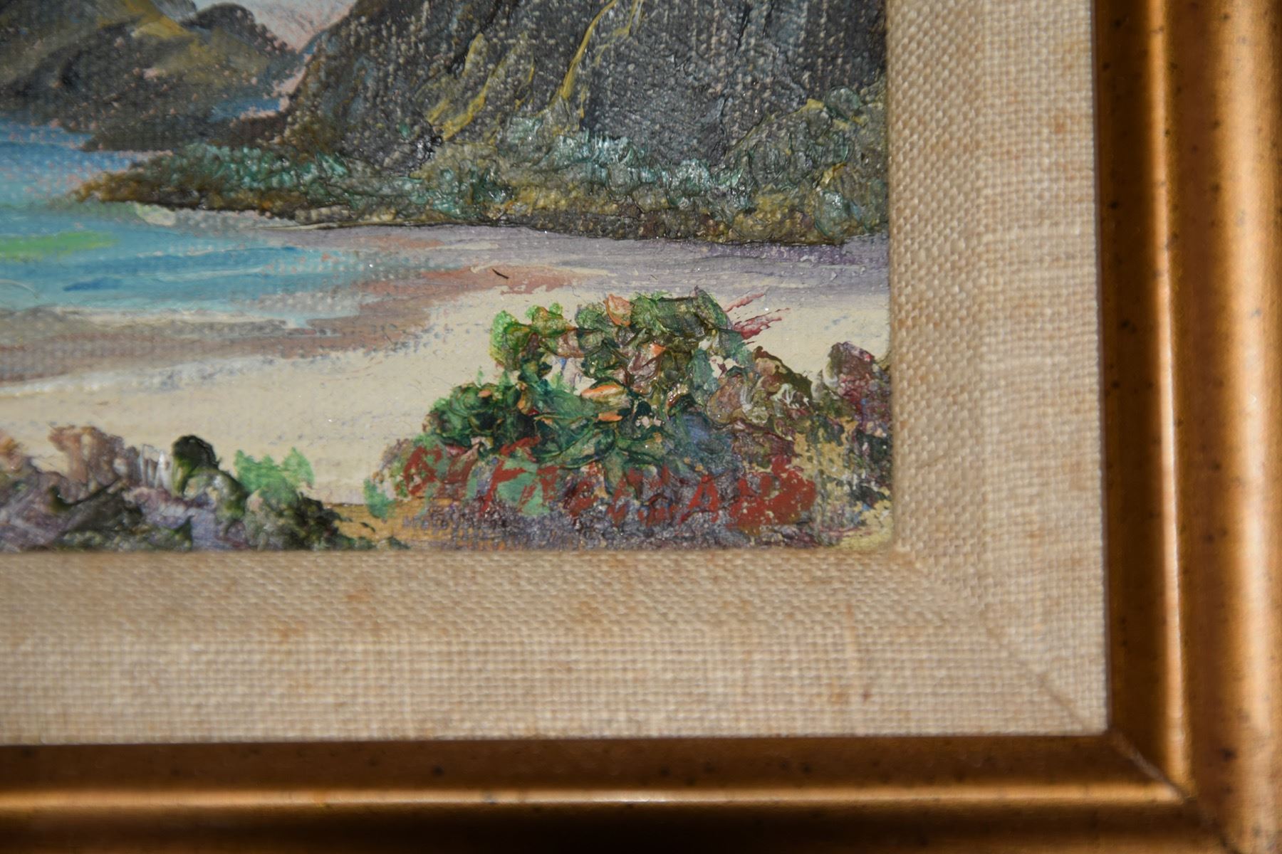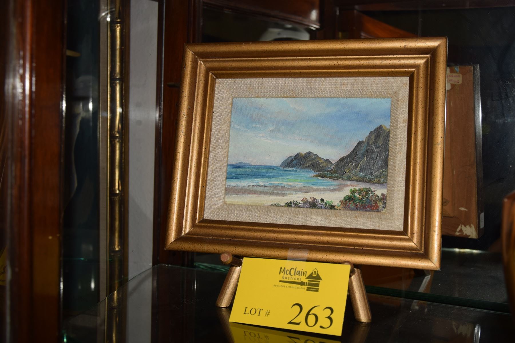 FRAMED OIL ON CANVAS, "BELLOWS BEACH"; SIGNED B.H. FREELAND (8 1/2" X 10 1/2" FRAMED)