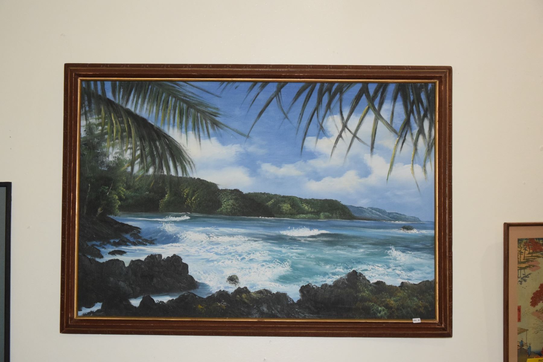 FRAMED OIL ON CANVAS, "BIG ISLE COAST LINE" (27" X 39')