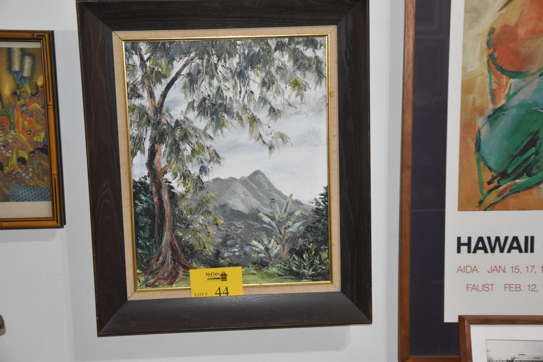 FRAMED OIL ON CANVAS, DIAMOND HEAD; SIGNED MS MCMILLAN (21 1/2" X 25 1/2")