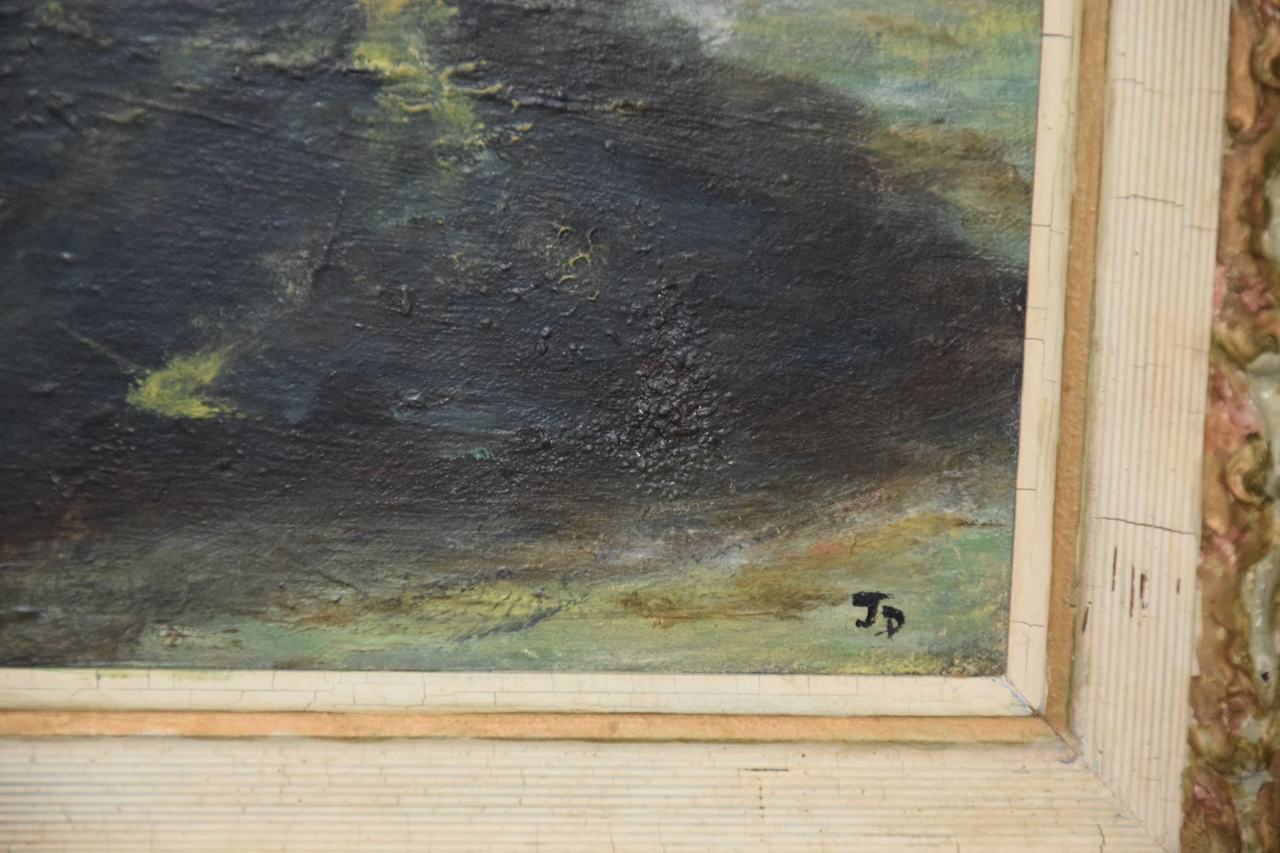 FRAMED OIL ON CANVAS, "KAU COVE" SIGNED J.D. (16" X 20")