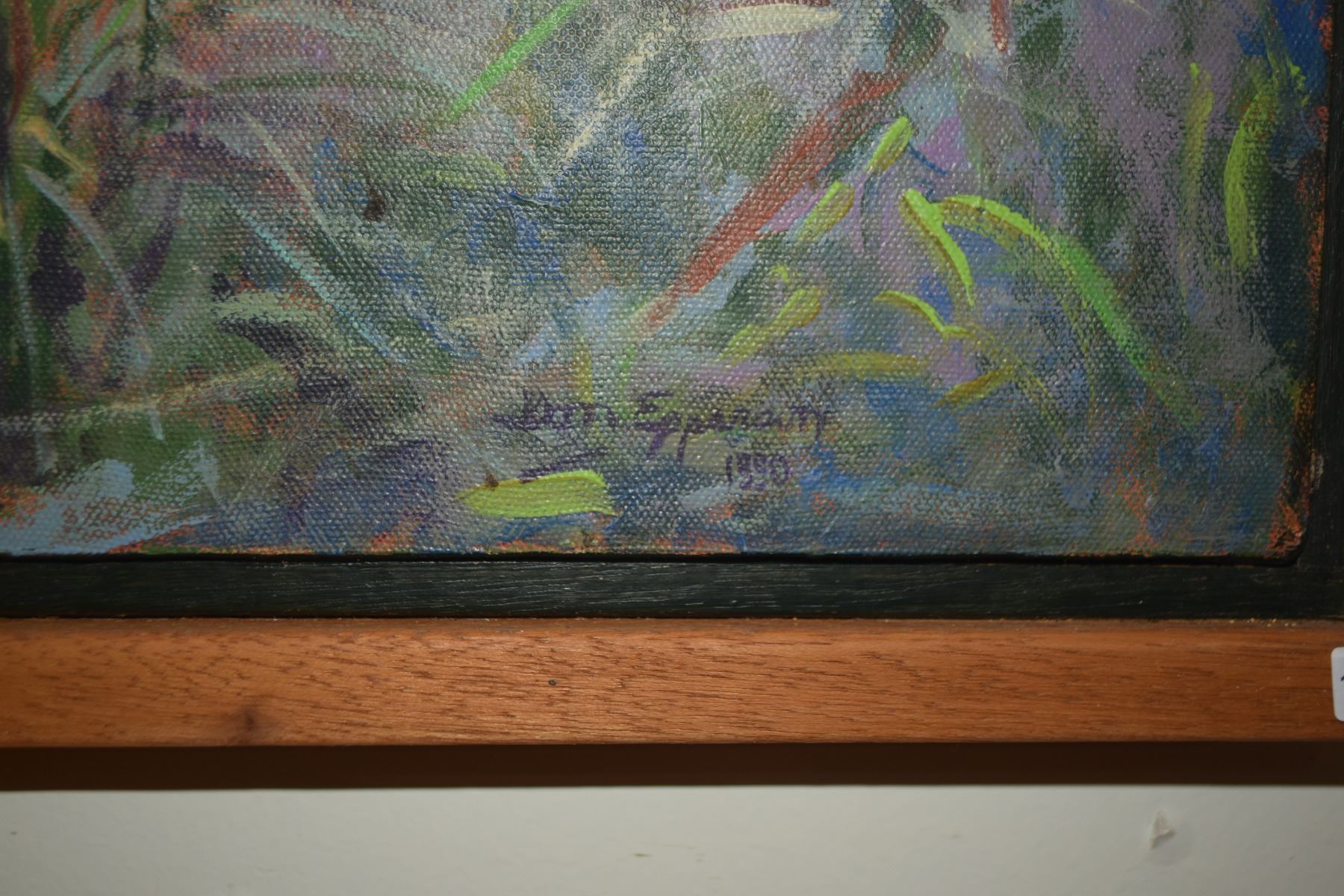 FRAMED OIL ON CANVAS, "MEADOW SCENE; SIGNED & DATED 1990 (26 1/2" X 36 1/2")