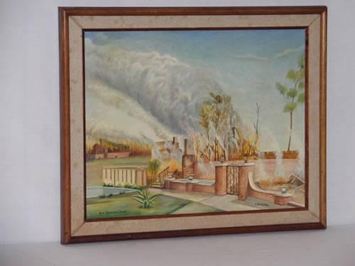 FRAMED OIL ON CANVAS PANEL OF SAN FERNANDO VALLEY CA WILD FIRE, SIGNED C. ZUCCATO (15 1/2" X 19 1/2");