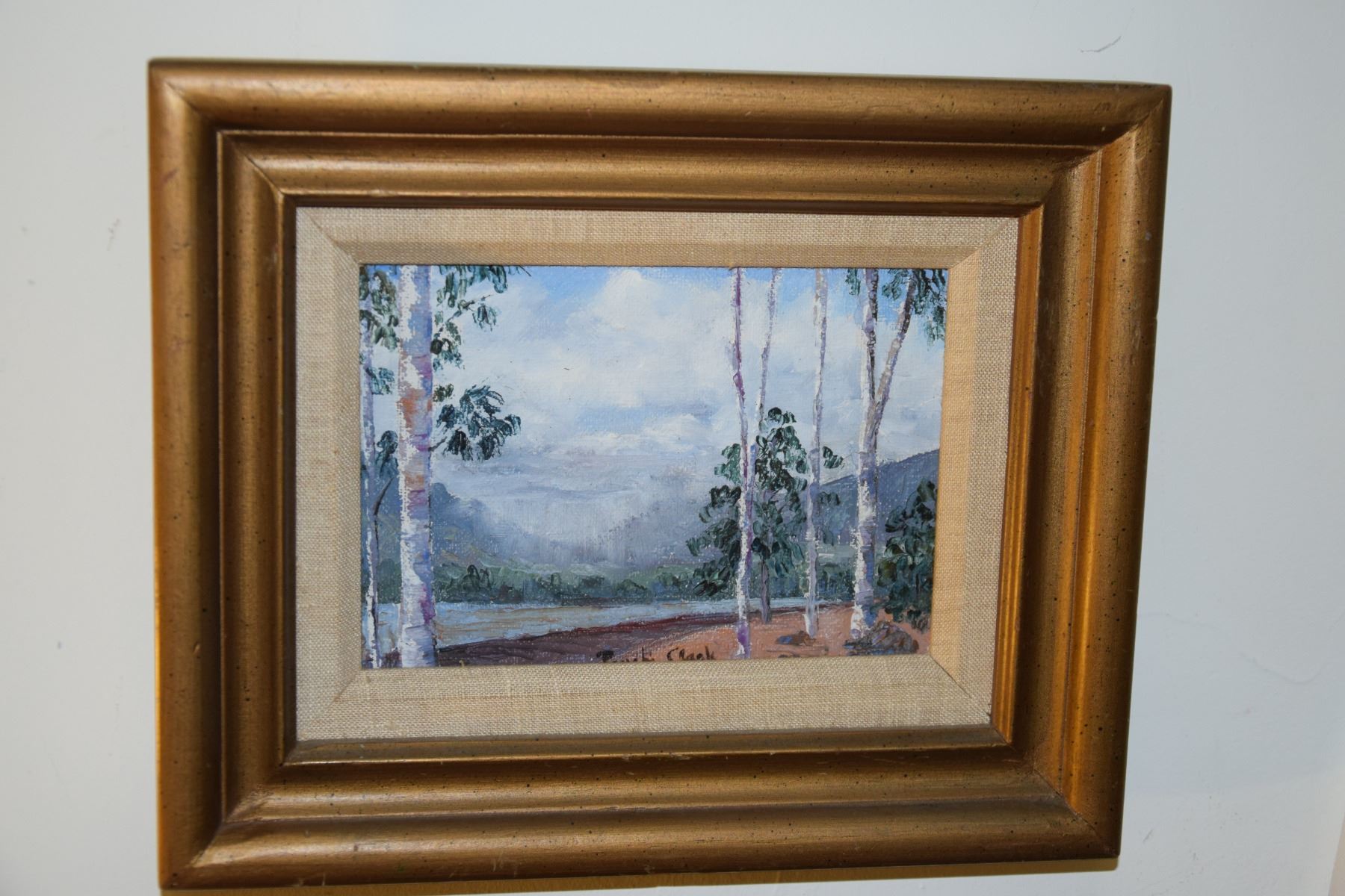 FRAMED OIL ON CANVAS, "RAIN OVER KOLEKOLE PASS"; SIGNED PAUAHI CLARK, (10 1/2" X 9")