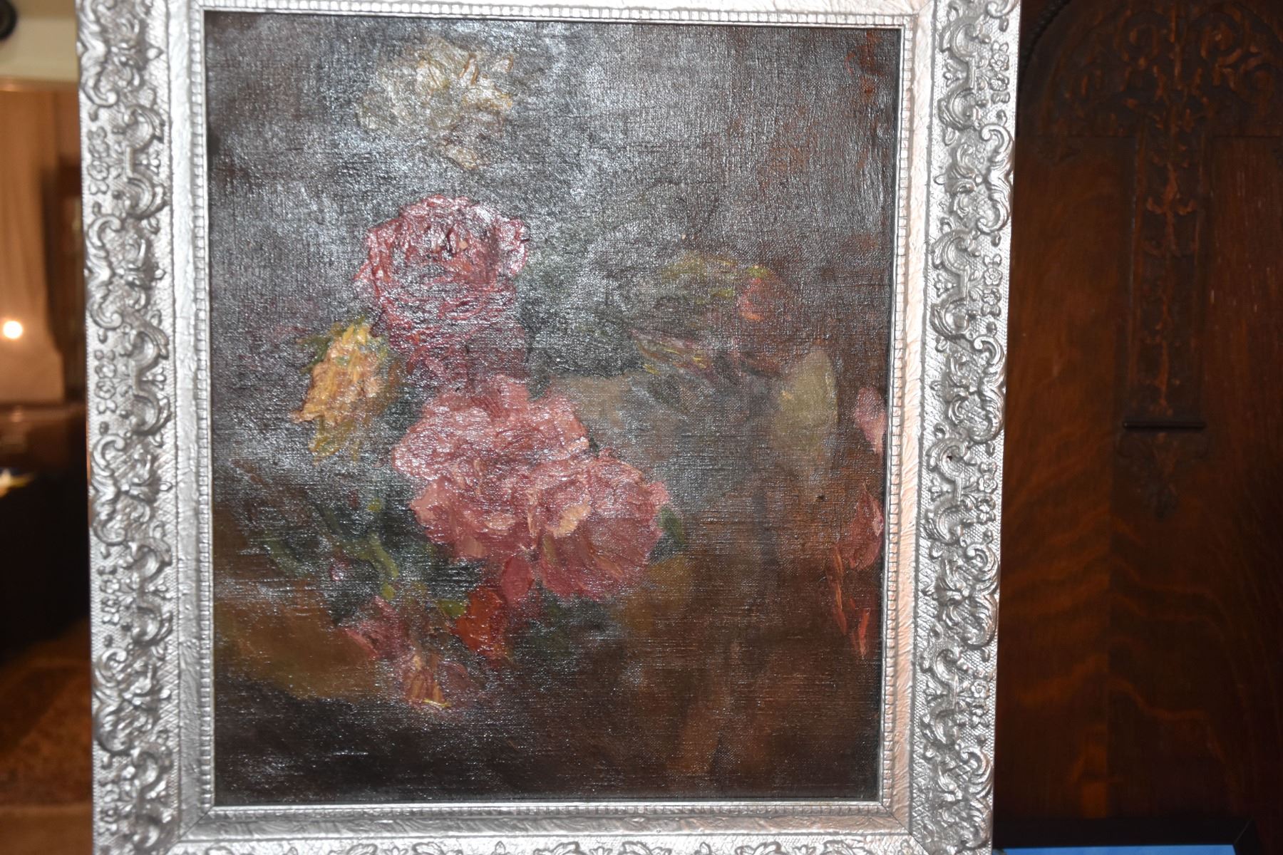 FRAMED OIL ON CANVAS, STILL LIFE-ROSES; UNSIGNED (17 3/4" X 20")