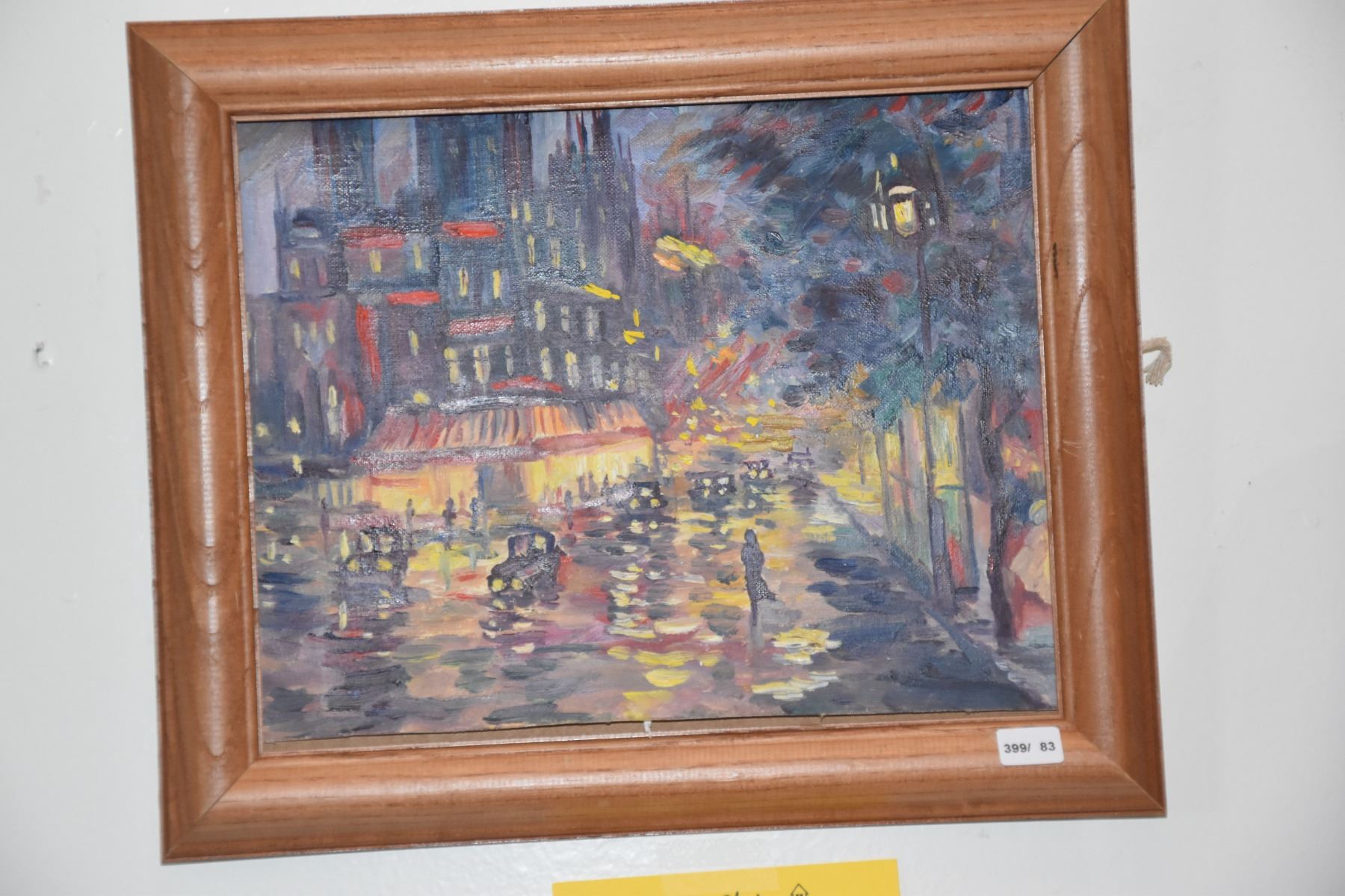 FRAMED OIL ON CANVAS, STREET SCENE (12 1/4" X 10 1/4")