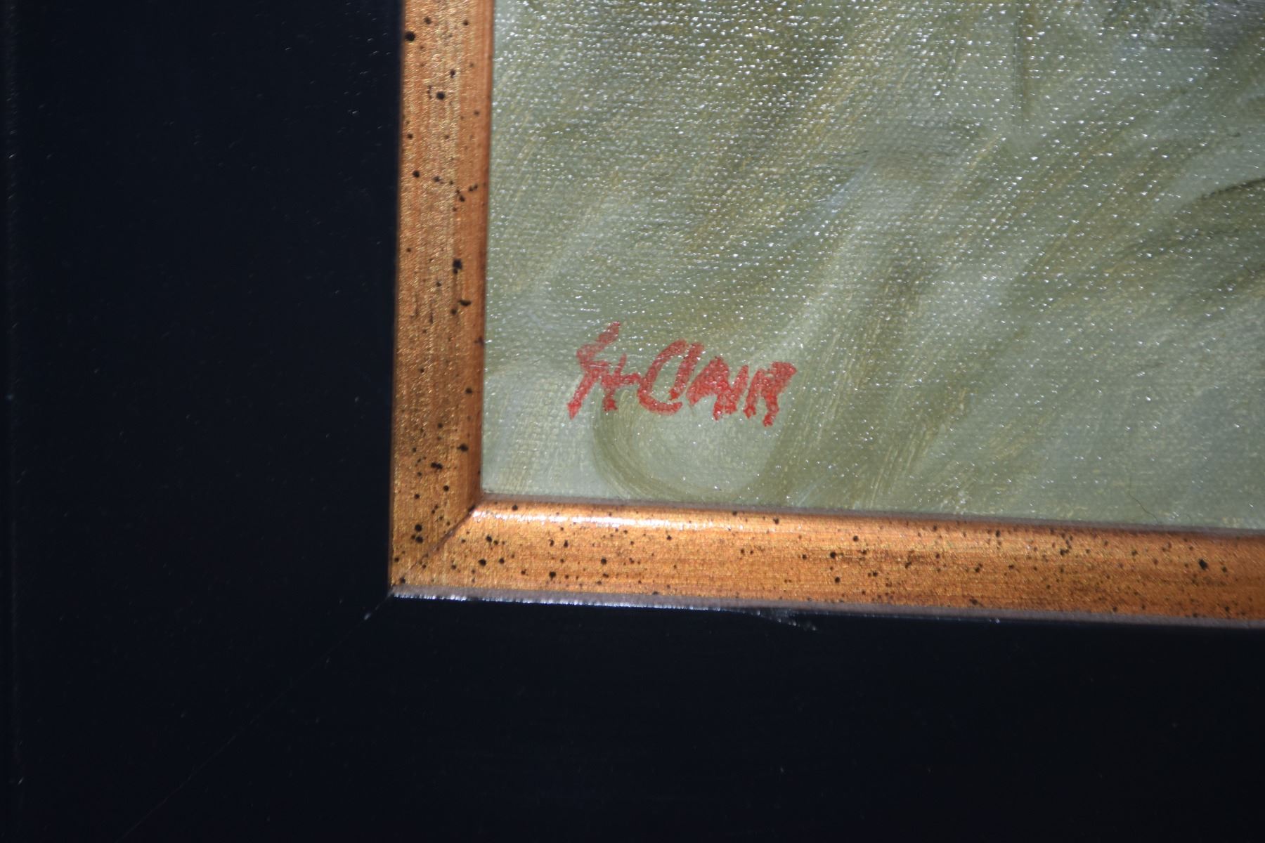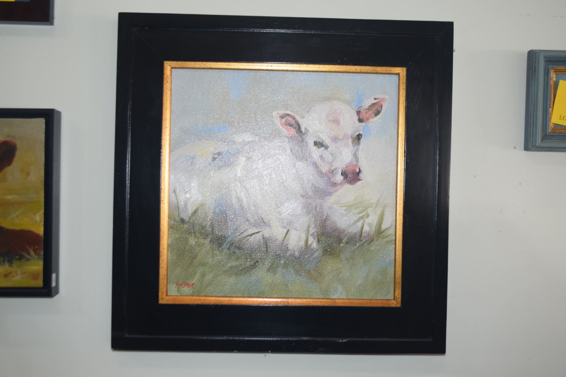 FRAMED OIL ON CANVAS, "UNTITLED", DEPICTING A CALF; LINDA ST. CLAIR (20" X 20")