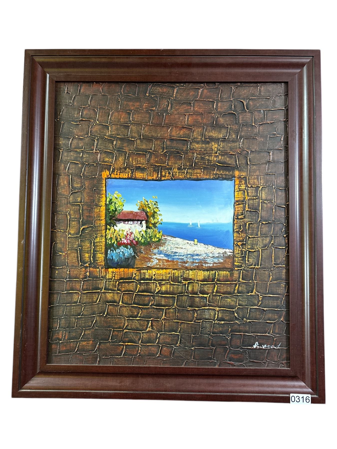 FRAMED ORIGINAL PAINTING ON CANVAS SIGNED BY ARTIST A. WOOD 24.5 IN X 28.5 IN