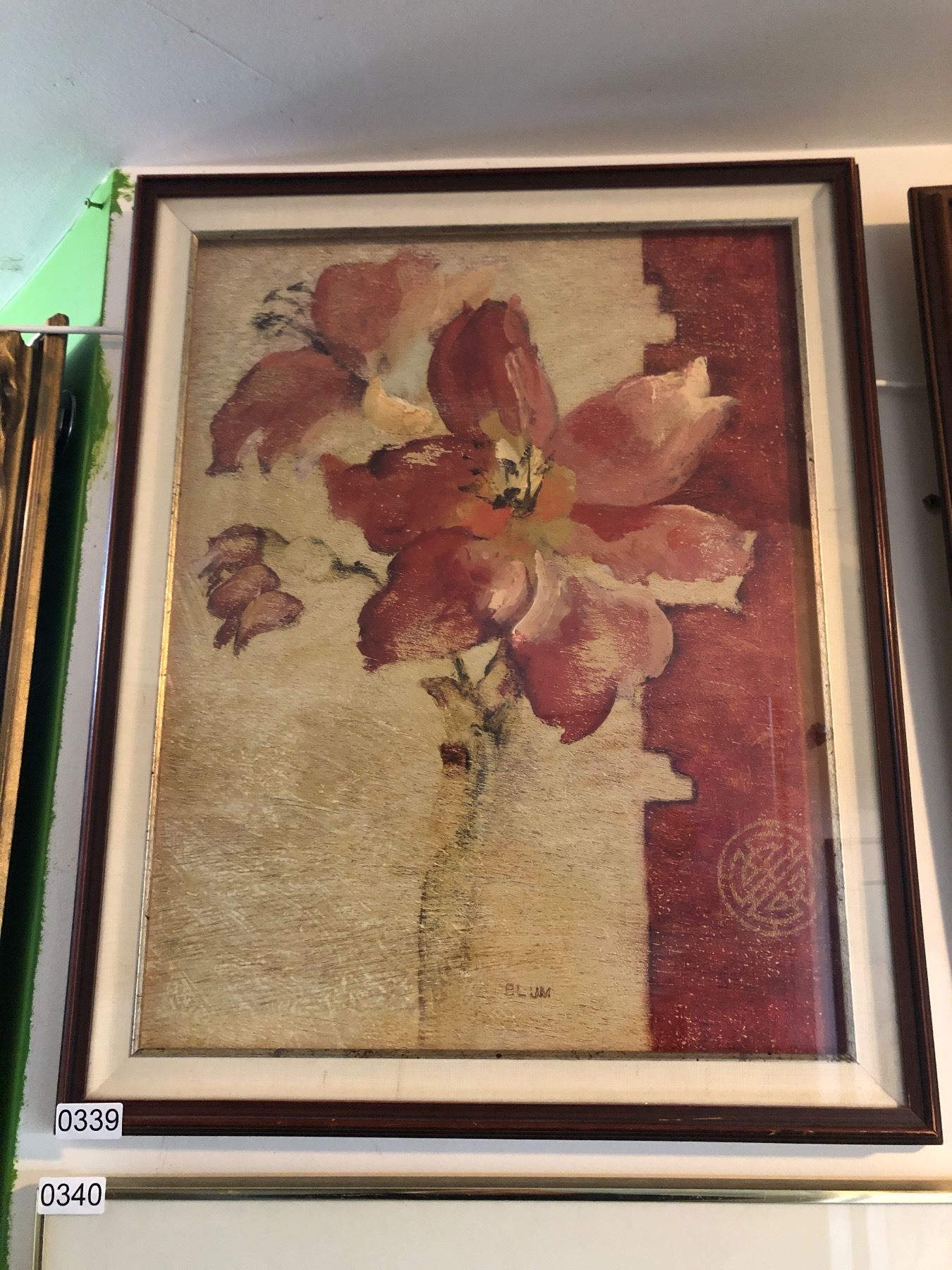 FRAMED ORIGINAL PAINTING/ PRINT BY ARTIST BLUMB FROM ESTATE 21 IN X 26 IN