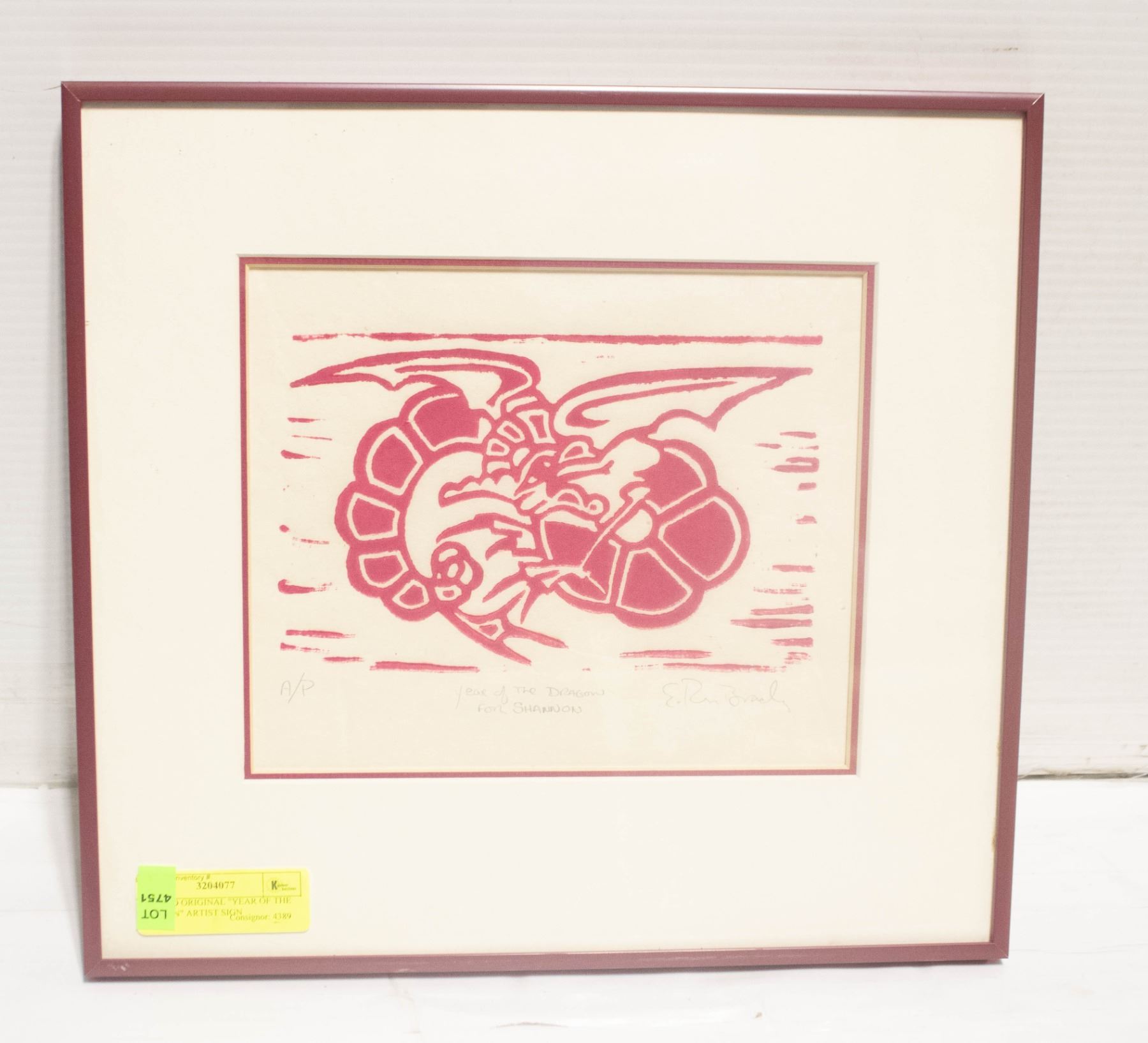 FRAMED ORIGINAL "YEAR OF THE DRAGON" ARTIST SIGN
