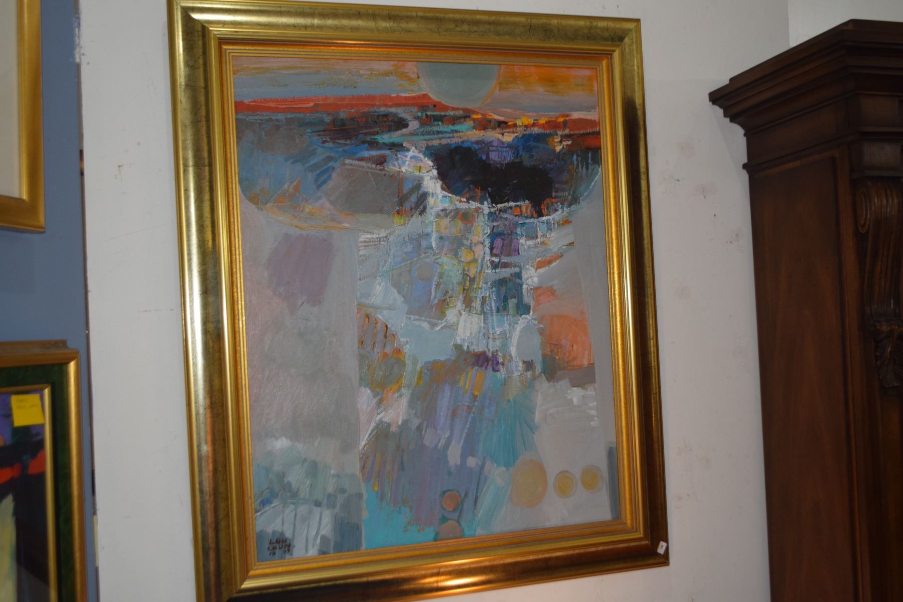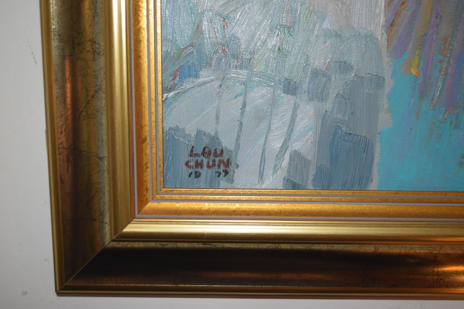 FRAMED PAINTING, DIAMOND HEAD; SIGNED LAU CHUN (30 3/4" X 36 1/2")