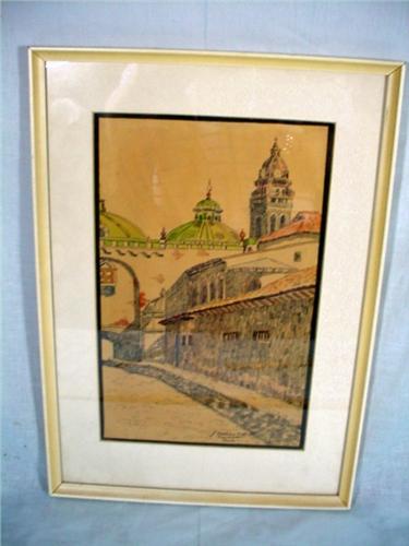 FRAMED PEN AND INK OF MADRID STREET SIGNED BY ARTIST 18" X 12.5"