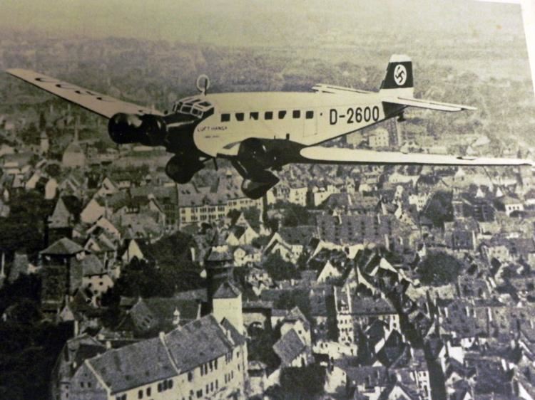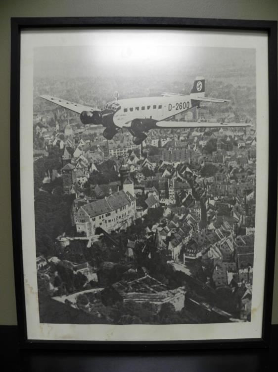 OFFERED HERE IS A GREAT, 23"X29" FRAMED PERIOD PHOTO OF HITLER'S PERSONAL PLANE LUFTHANSA D2600 FLYING OVER SOUTHERN GERMANY-PHOTO WAS TAKEN BY HITLER'S PERSONAL PHOTOGRAPHER HEINRICH HOFFMANN IN 1934--GREAT PIECE FOR YOUR COLLECTION ROOM--FRAMING WAS POST-WAR--READY TO HANG.