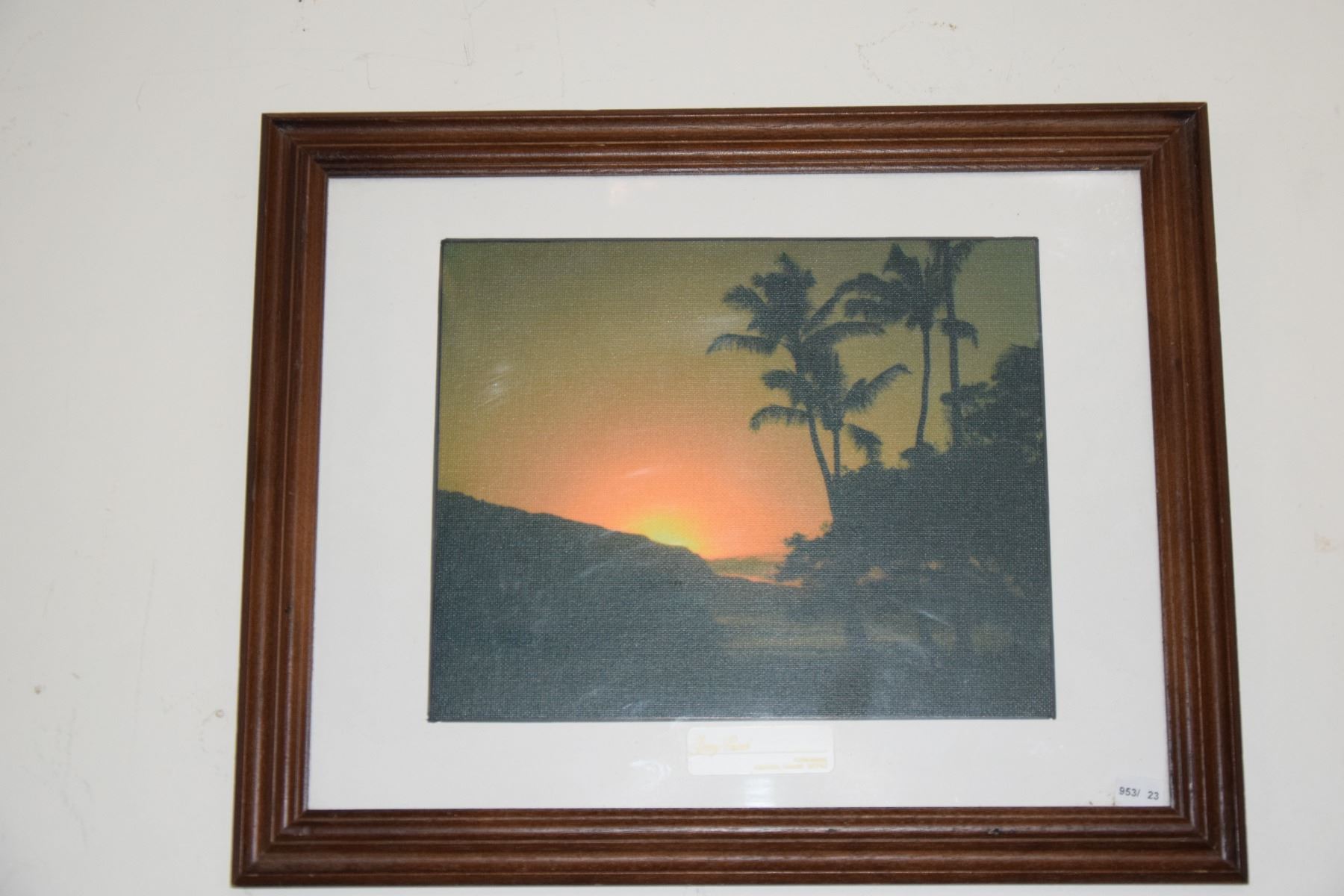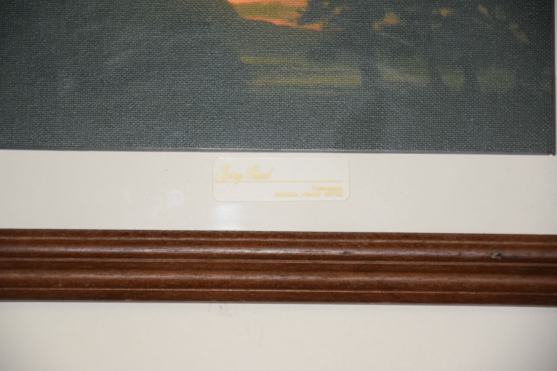 FRAMED PICTURE, "MOLOKA'I HAWAII"; BY JERRY GUIEB, (12 3/4 X 16") (KALAUPAPA)