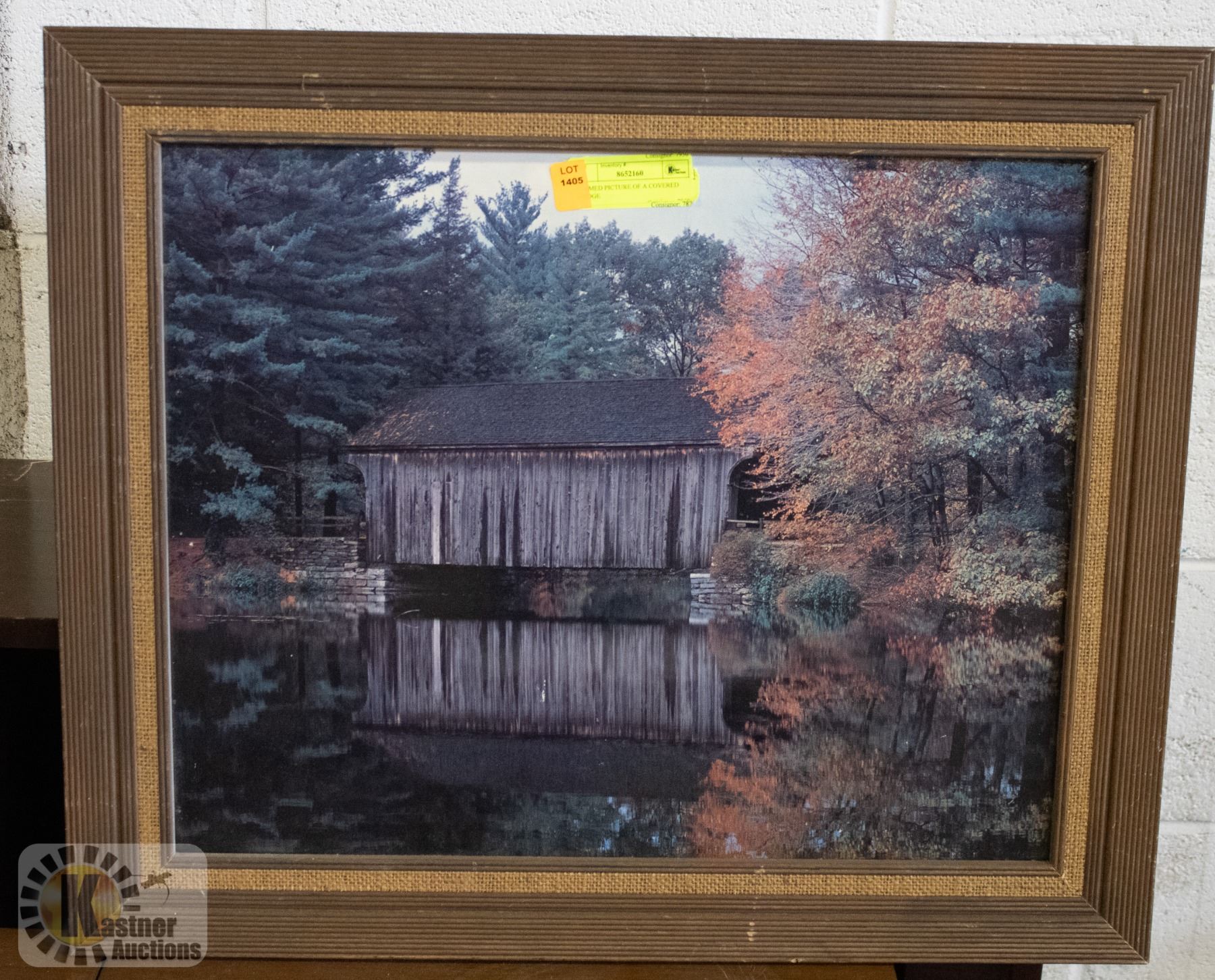 FRAMED PICTURE OF A COVERED BRIDGE