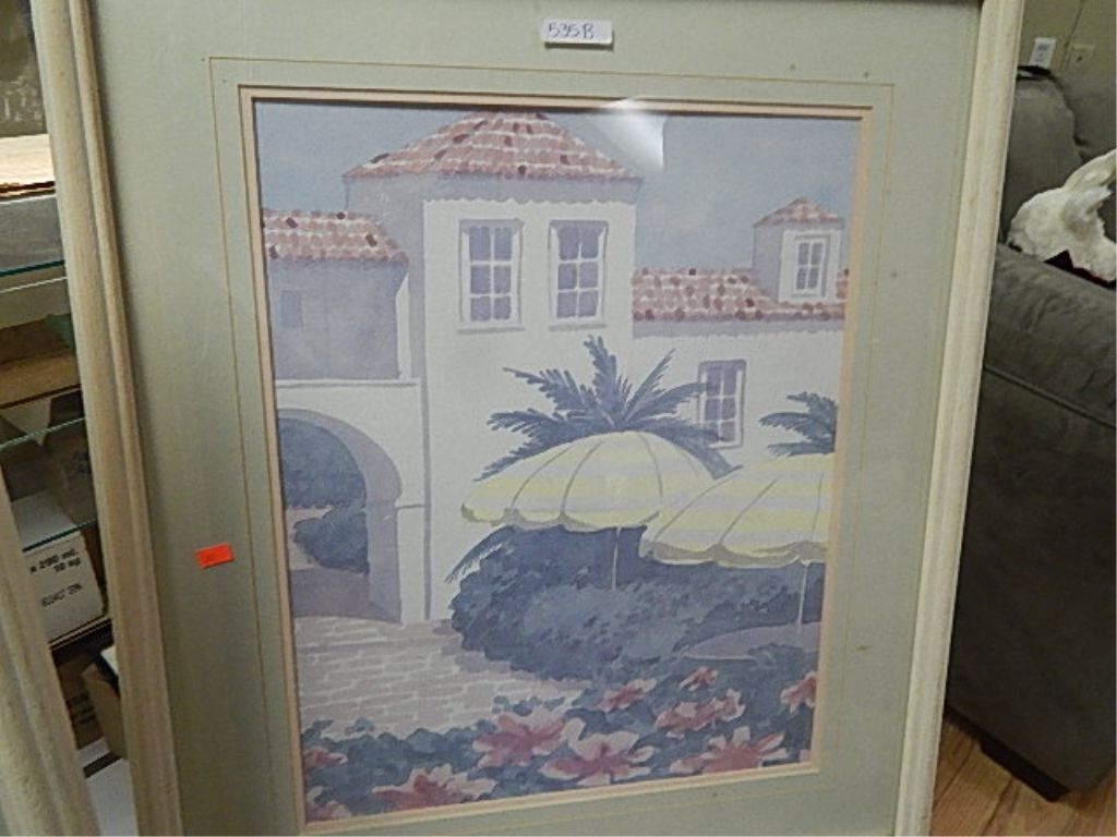 FRAMED PICTURE - PASTEL PATIO - 2 UMBRELLA