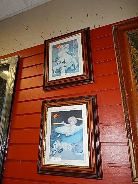 FRAMED PICTURES - GIRL & DOG & BOY IN BATH
