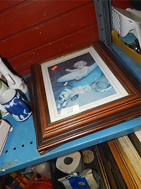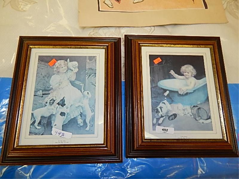 FRAMED PICTURES - GIRL & DOG & BOY IN BATH