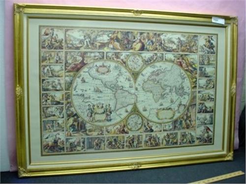 FRAMED PRINT GLOBE OF THE AMERICA'S 40"WIDE 28" HIGH.
