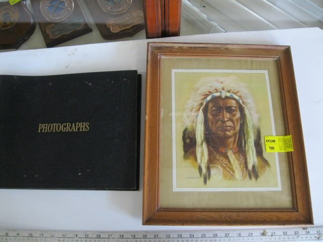 FRAMED PRINT OF "THE FIRST NATIONS CHIEF" BY A. SHERRIFF SCOTT, OLD PHOTO ALBUM