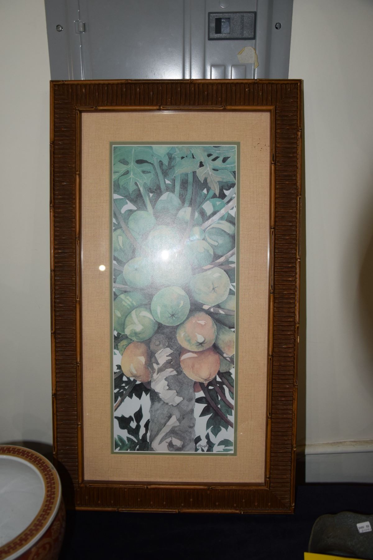 FRAMED PRINT, "PAPAYA TREE"; SIGNED GUPTON (16" X 28")