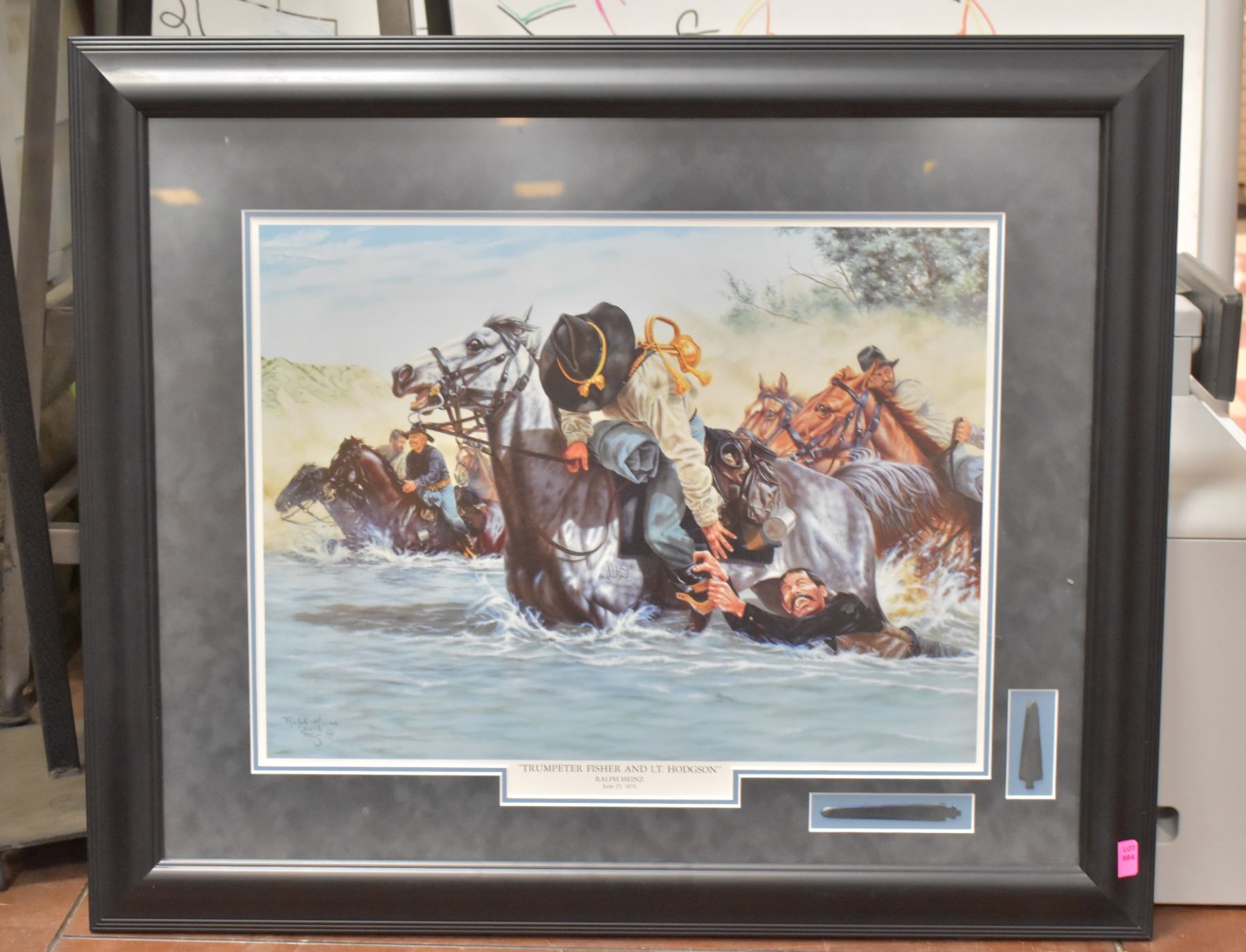 FRAMED PRINT "TRUMPETER FISHER AND LT. HODGSON" BY RALPH HEINZ JUNE 25 1876, 30"W X 26"H