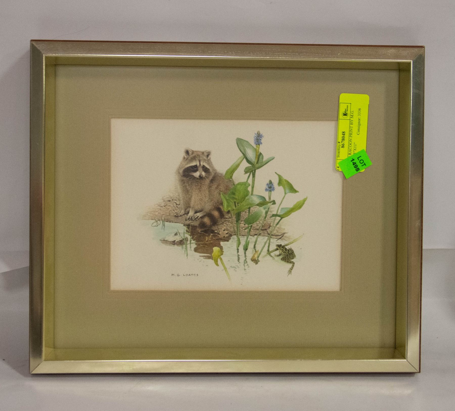 FRAMED RACOON PRINT BY M.G. LOATES 13"X11"
