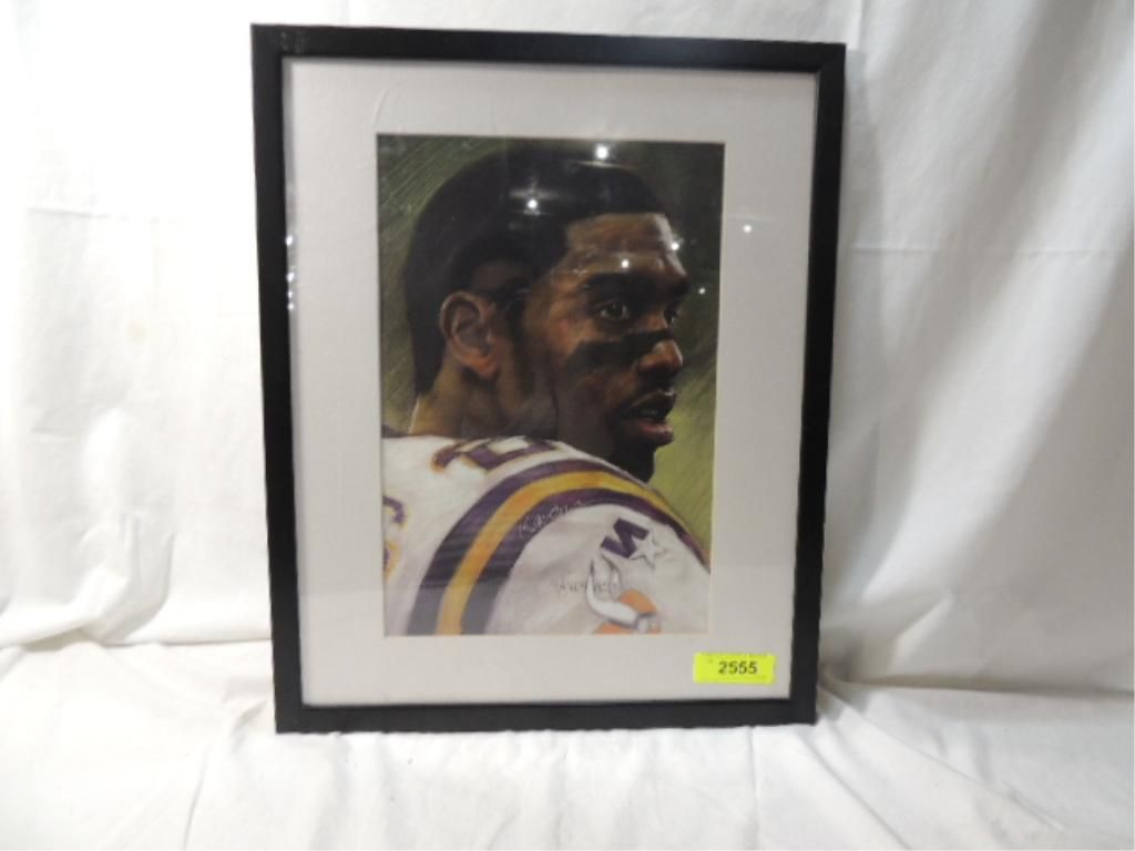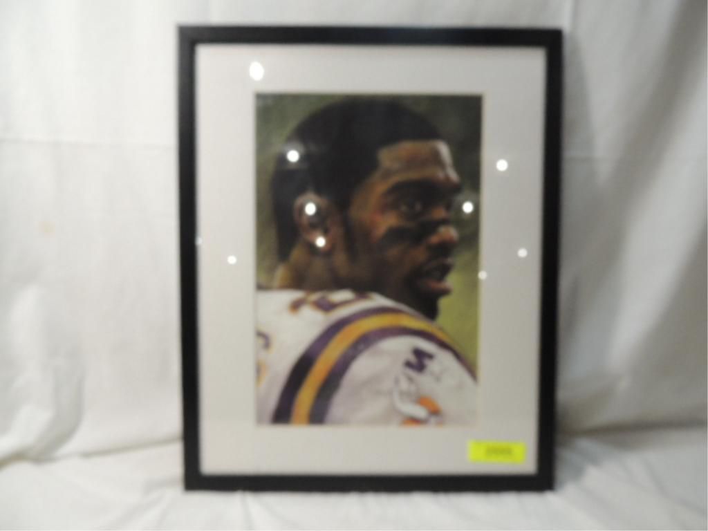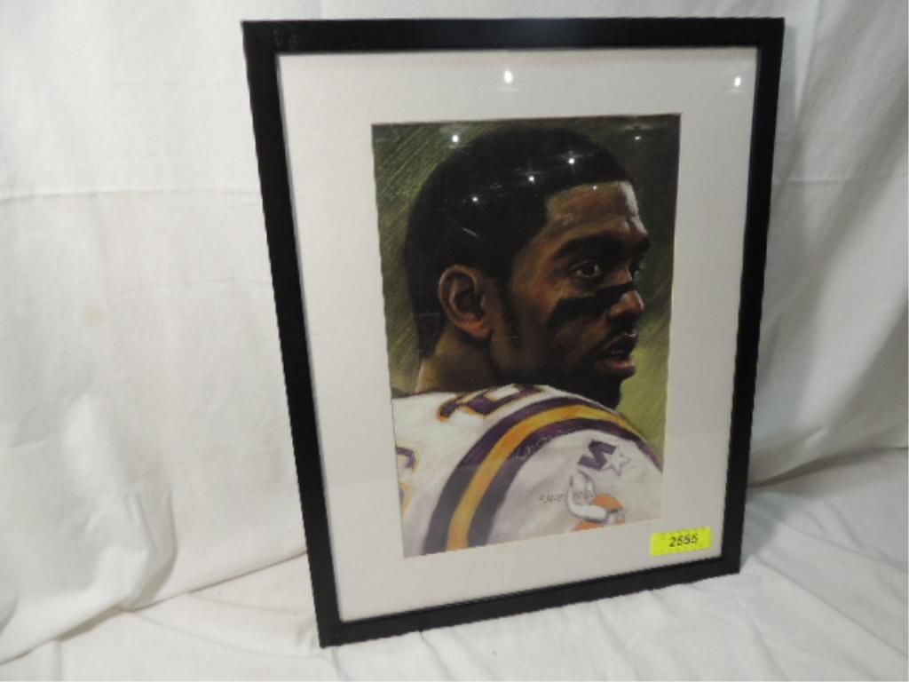 COLOR DRAWING RANDY MOSS FRAMED AND MATTED. AS SHOWN. SEE PHOTO FOR MORE DETAILS.