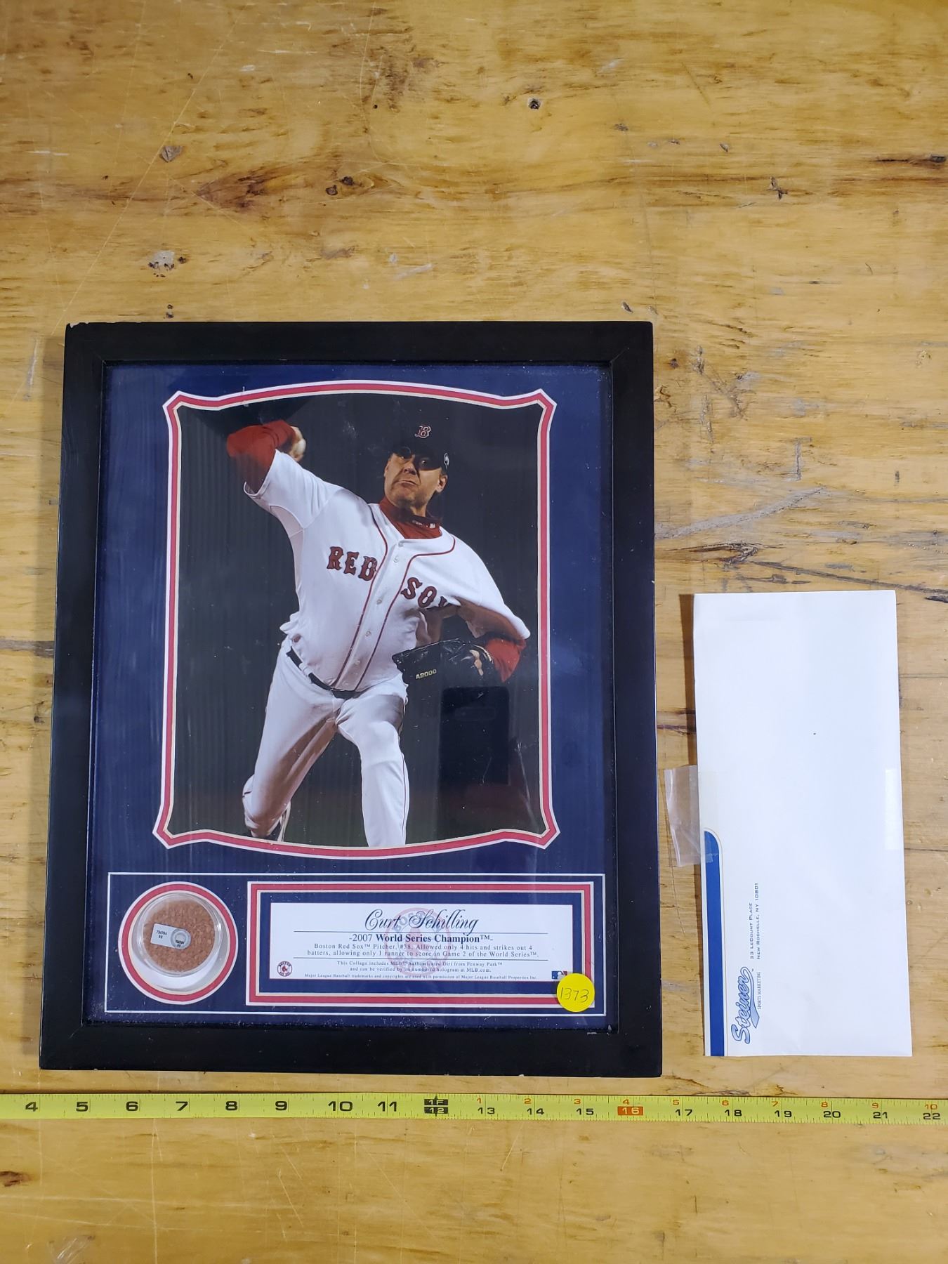 FRAMED RED SOX PICTURE CURT SCHILLING W/ LETTER OF AUTHENTICITY