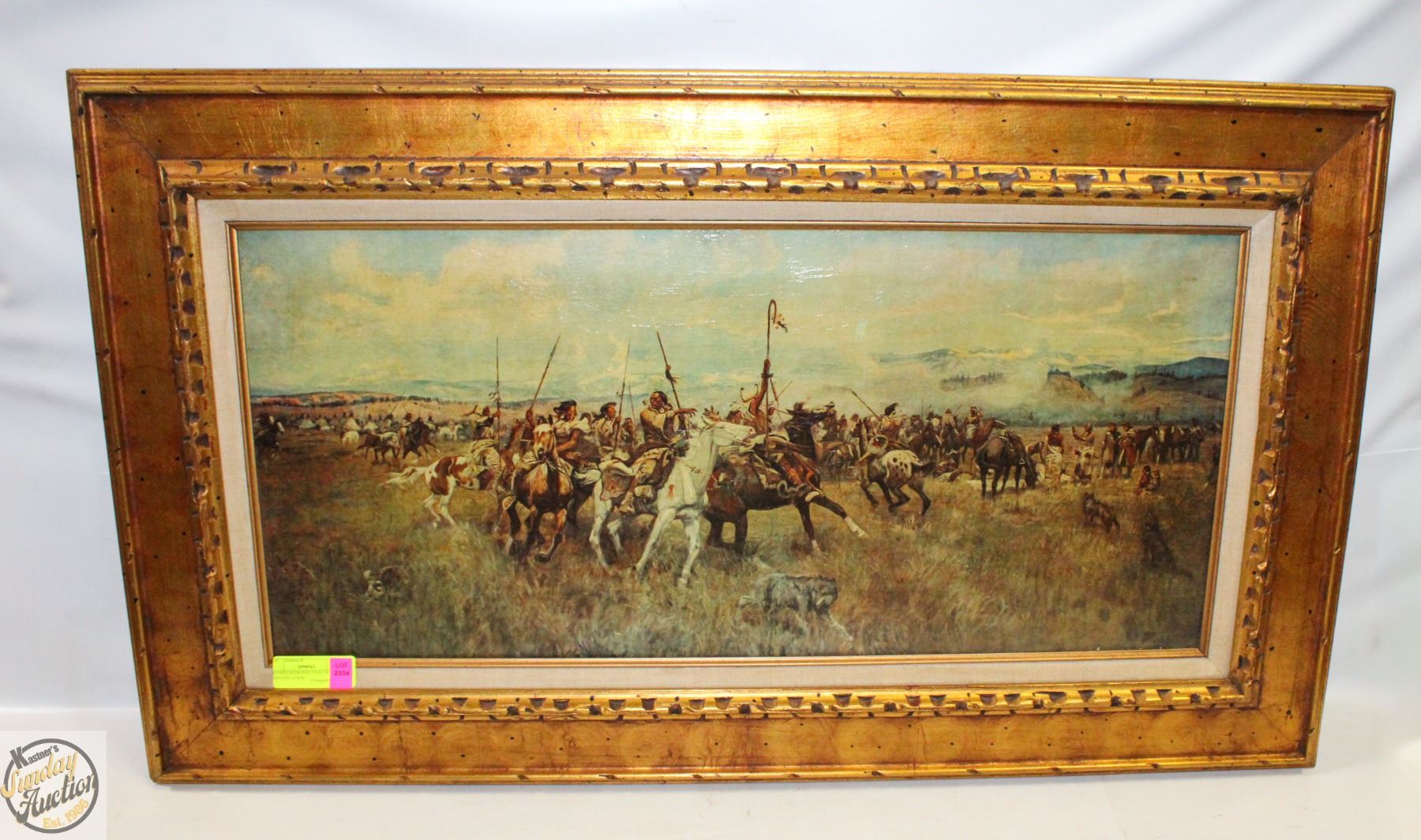 CLARK 22” x 38” (CHARLES RUSSELL) **ALL ITEMS MUST BE REMOVED BY 5PM SATURDAY, SEPTEMBER 6TH 2025. ALL REMAINING ITEMS WILL BE SUBJECT TO A $6.00 PER DAY STORAGE CHARGE. ANY ITEMS REMAINING AFTER MONDAY, SEPTEMBER 22ND 2025 WILL BE CONSIDERED FORFEITED. NO REFUNDS WILL BE ISSUED FOR FORFEITED ITEMS. TO SCHEDULE A PICK UP APPOINTMENT CLICK HERE