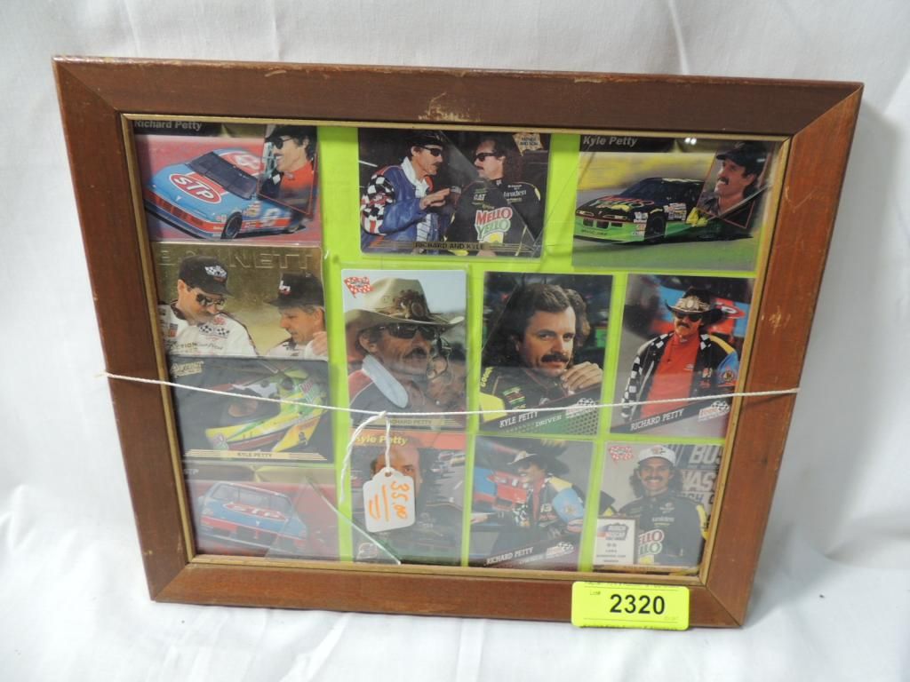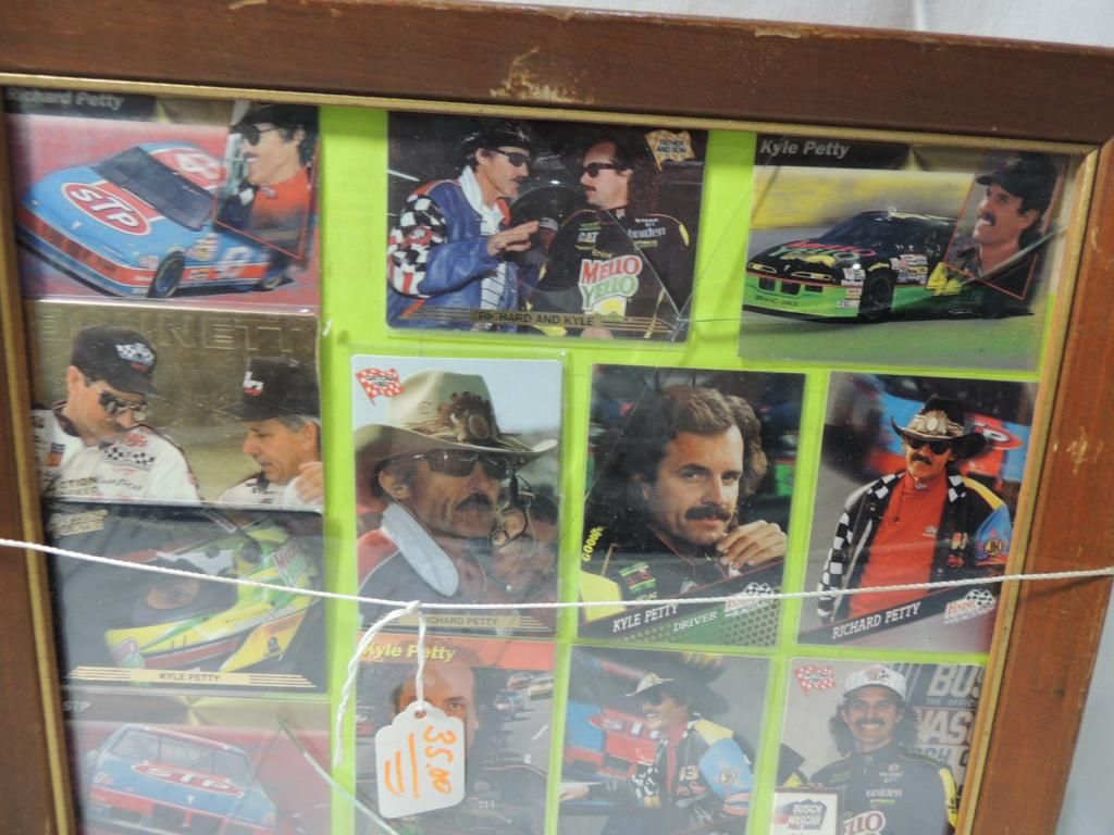 11 RICHARD PETTY AND KYLE PETTY NASCAR TRADING CARDS FRAMED COLLAGE. AS SHOWN. SEE PHOTO FOR MORE DETAILS.