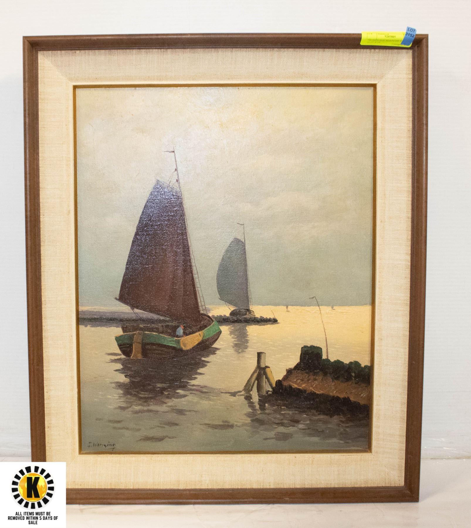 FRAMED SAIL BOATS OIL PAINTING 20.25" X 24"