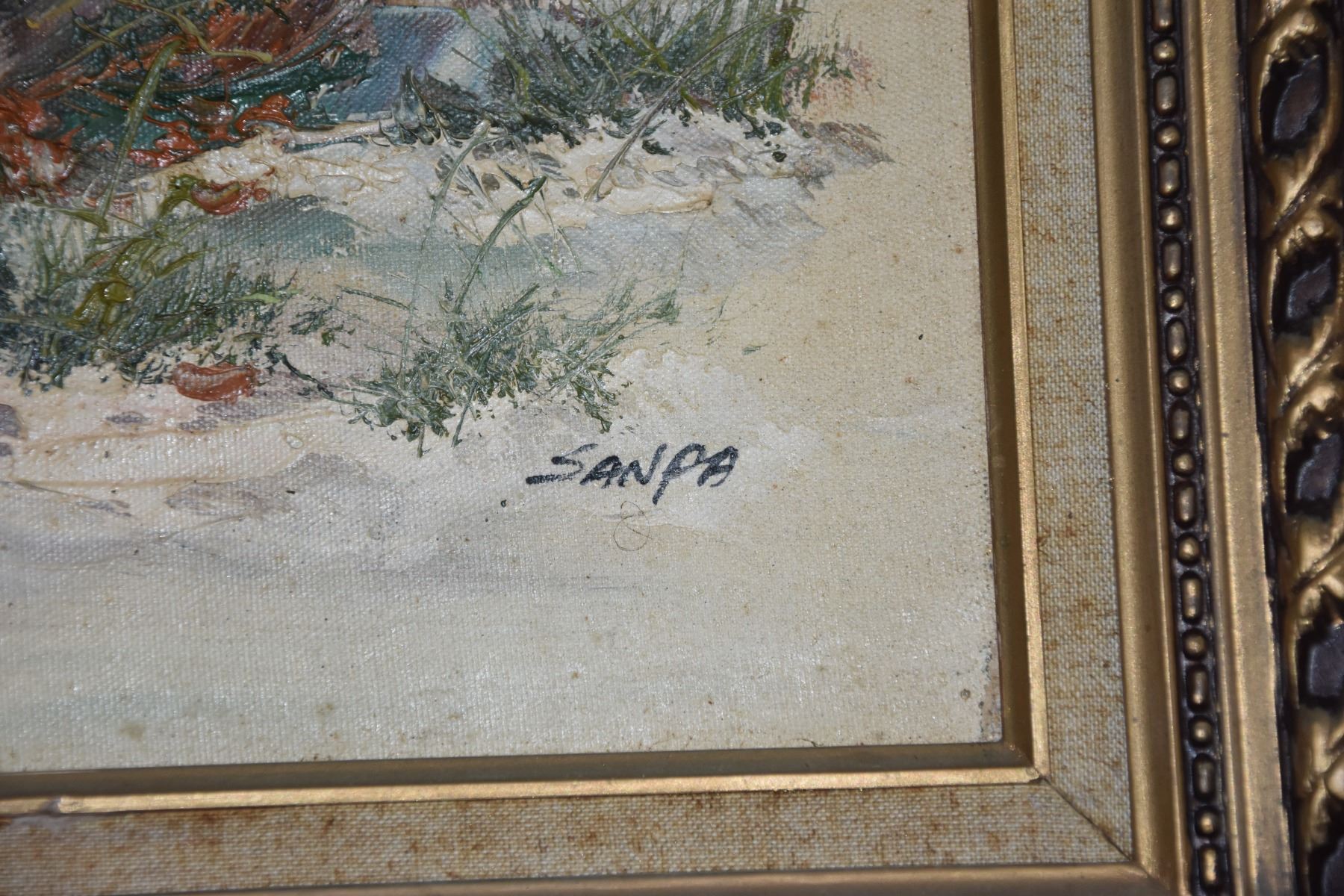 FRAMED SEASCAPE PAINTING; SIGNED SANPA (20 3/4" X 17 1/4")