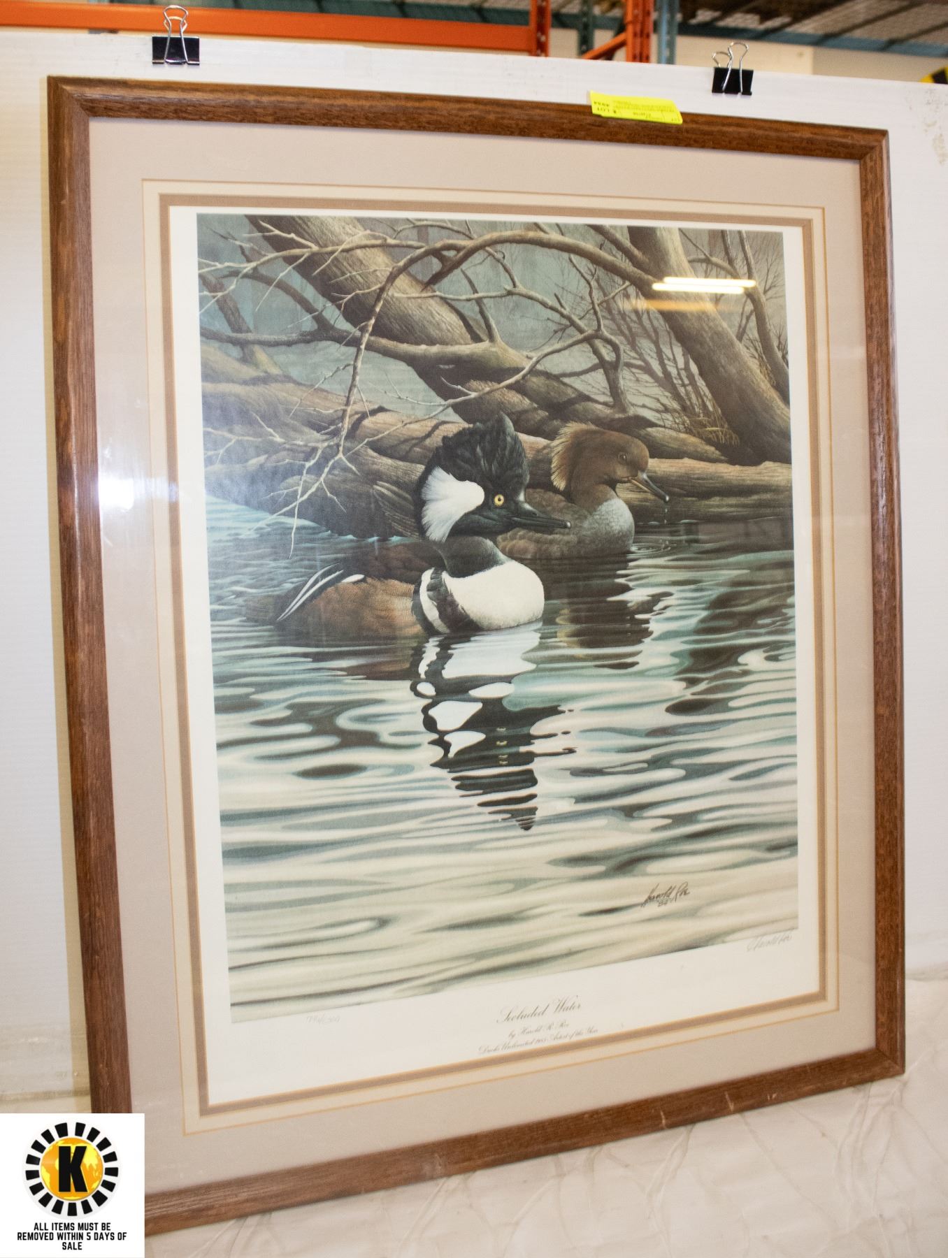 FRAMED ?SECLUDED WATER? BY HAROLD R ROE, DUCKS UNLIMITED, SIGNED PRINT 24.5 X 29.5?