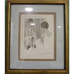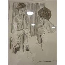 FRAMED & SIGNED LITHOGRAPH. Titled on reverse “First Date” by Jon. Signed in lower right. 17” x 20” framed.