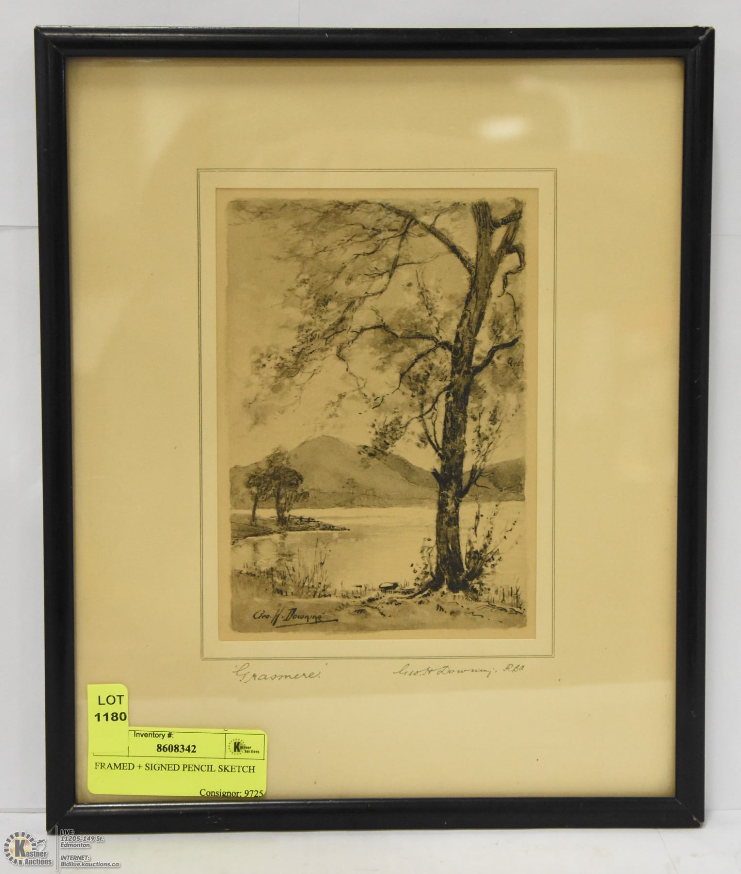 FRAMED + SIGNED PENCIL SKETCH APPROX 10" X 11.5"