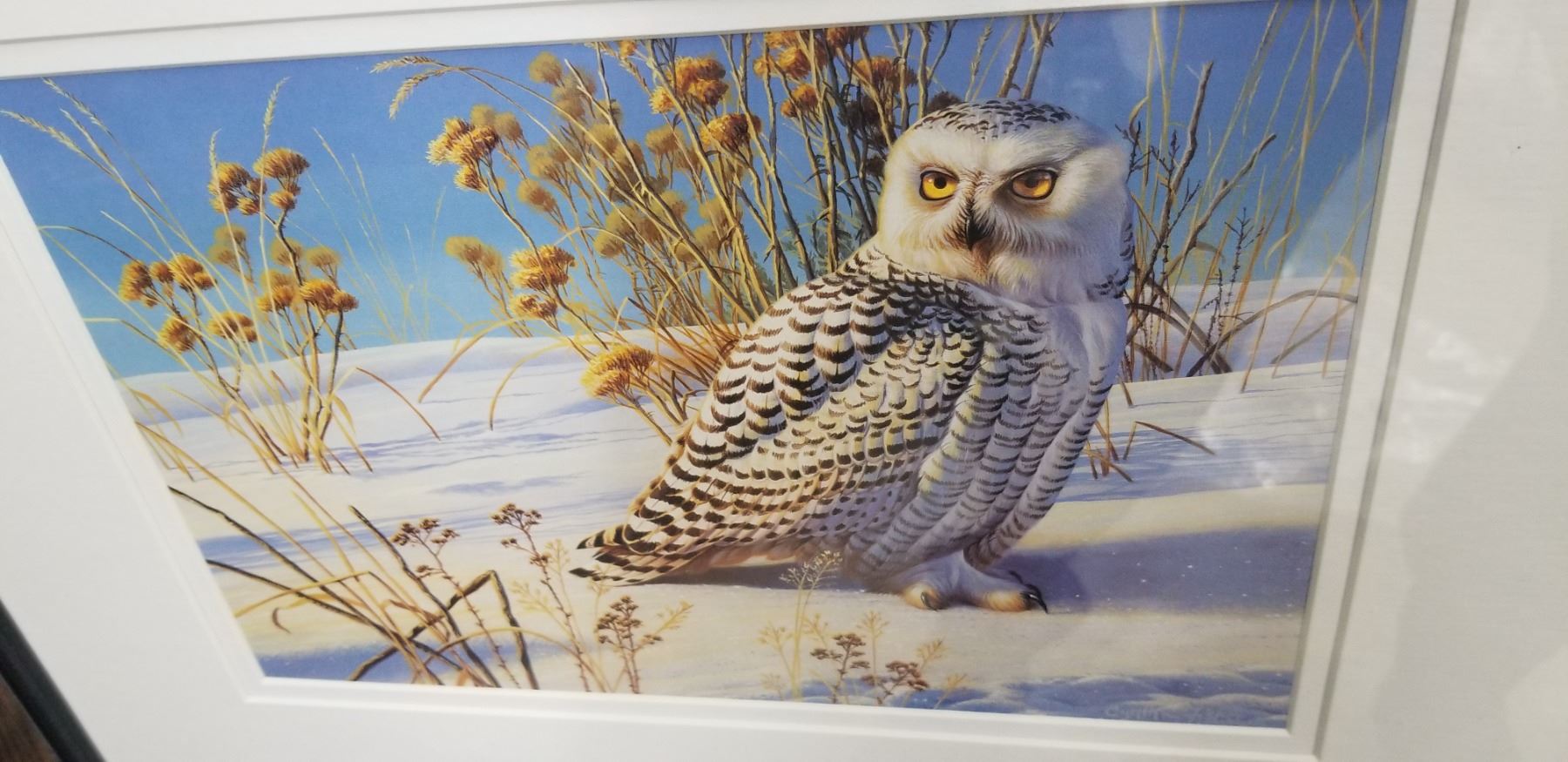 FRAMED SNOWY OWL 23"W X 19"H BY CYNTHIE FISHER