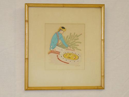 FRAMED SOUTHWEST WATERCOLOR OF NATIVE AMERICAN SIGNED H. BEGAY (6" X 5 1/4") - MINOR TONING