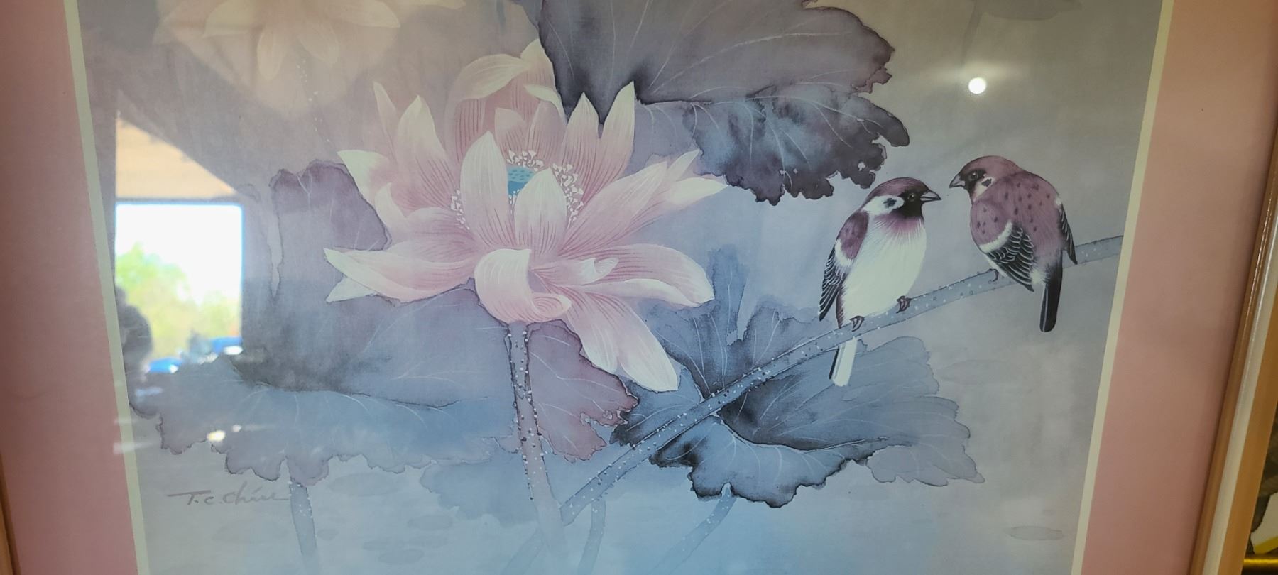 FRAMED SUNSET AND FINCH PRINT