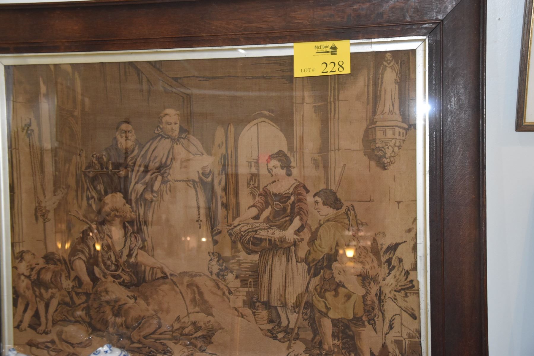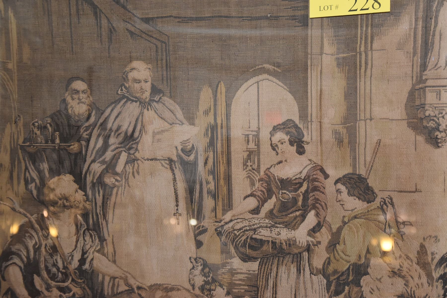 FRAMED TAPESTRY OF THE BOLTON ABBEY IN OLDEN TIMES (42 1/4" X 34 1/2")