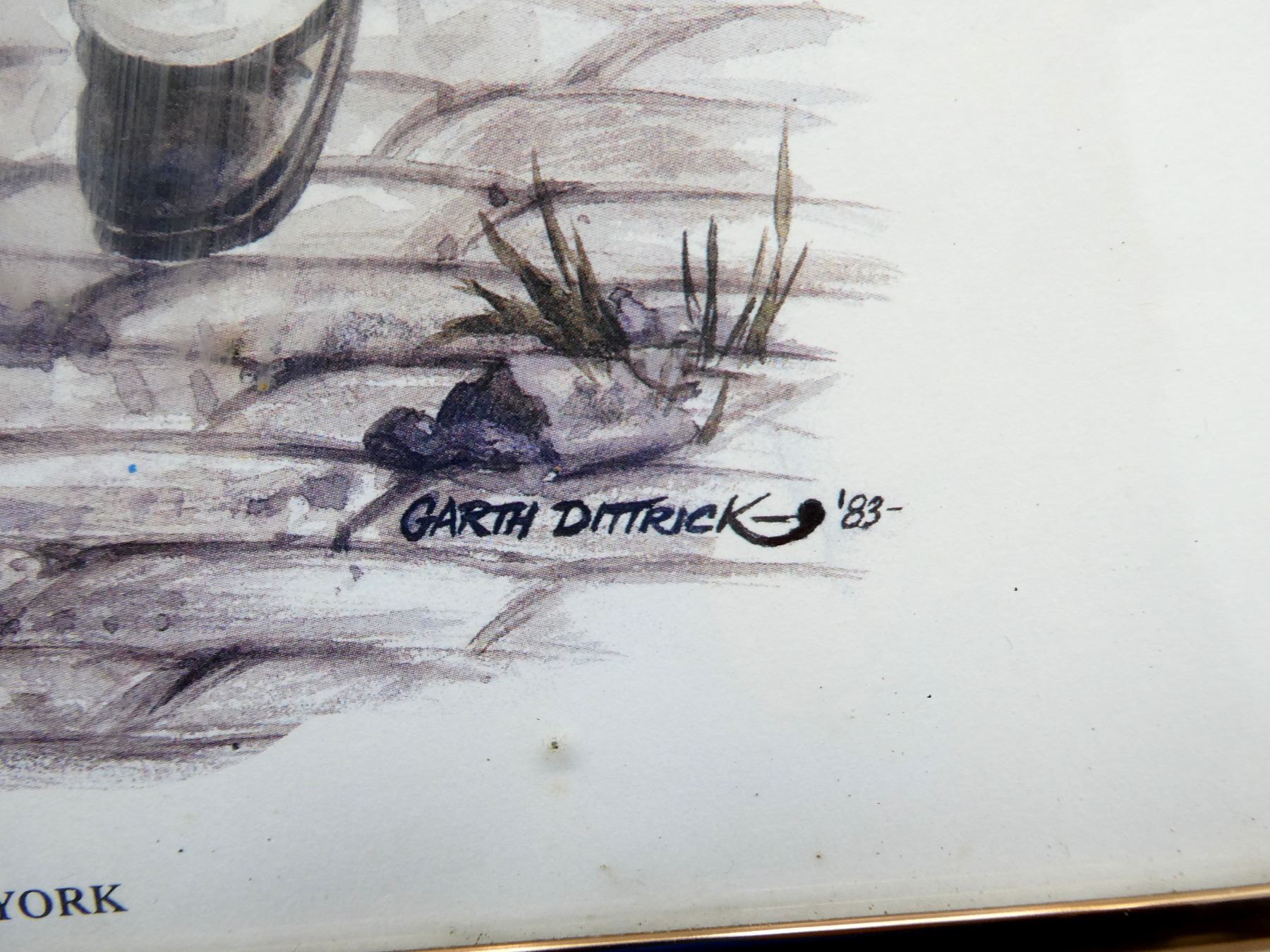 (1) BY GARTH DITTRICK, DATED 1983, METAL FRAME, UNDER GLASS, APPROX. 12.25" X 17.25" X 0.75". SEE PHOTOS. *NO GUARANTEE ON GLASS FOR SHIPPING*
