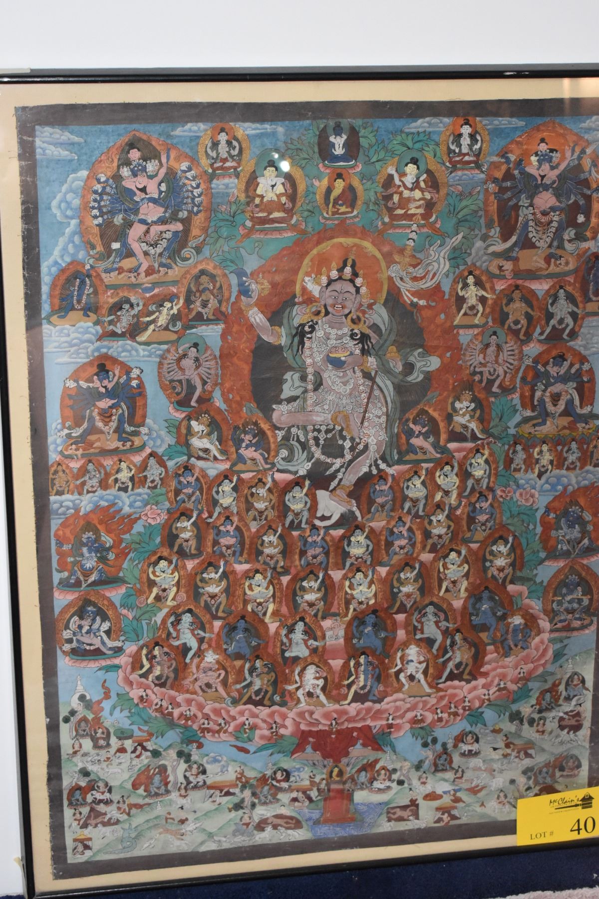 FRAMED TIBETAN TONKA POLYCHROME BUDDHIST PAINTING