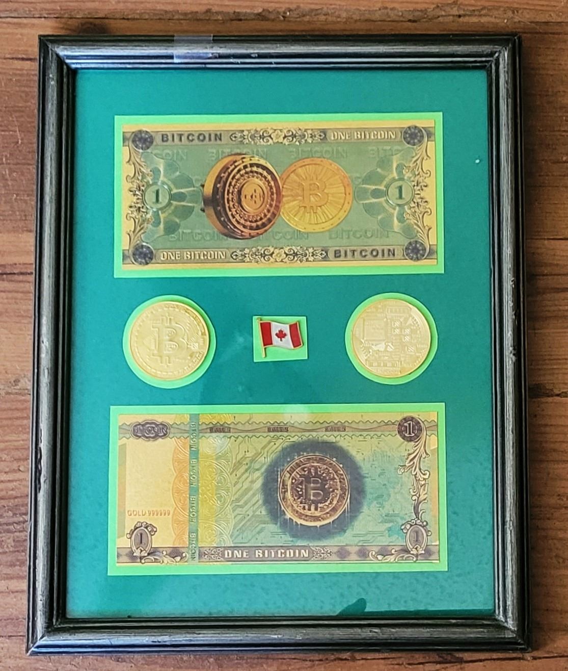 FRAMED, UNDER GLASS, 2 BITCOINS & 2 BITCOIN