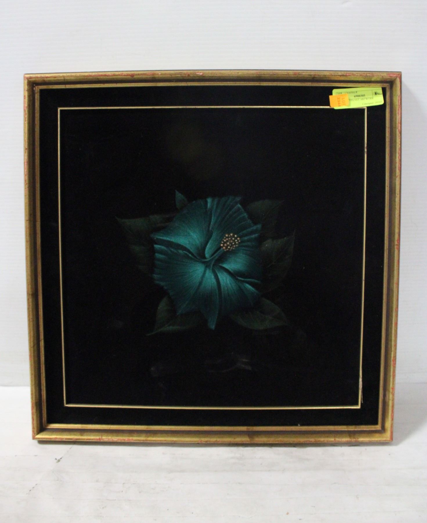 FRAMED VELVET ARTWORK APPROX 20" X 20"