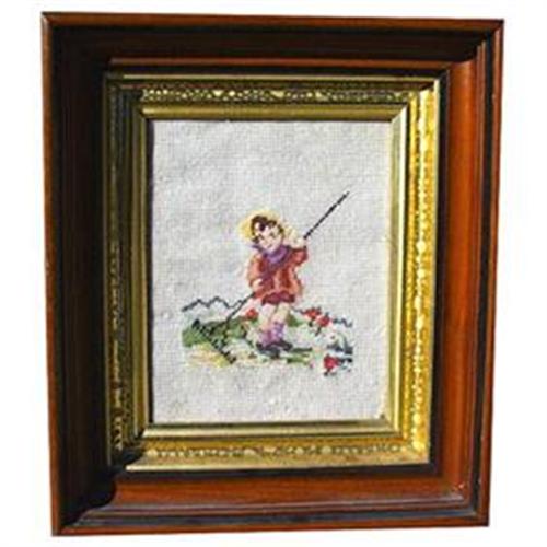 Lovely needlework - petit point - depicting "Little girl with rake", framed in massive walnut and gold leaf frame from the Victorian era. Excellent condition, overall framed dimension is 15-1/2 x 13-1/2 x 3-1/4 inches, American circa 1880-1910. Photos for Ebay Live Auctions are reduced and (distorted), if you want to see larger, more detailed pictures, please email us.