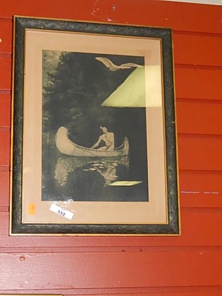 FRAMED VINTAGE PICTURE - NATIVE IN CANOE